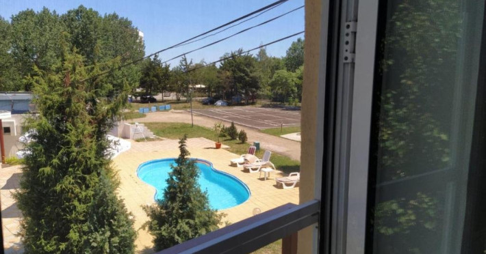 Apartamentele cu balcon sunt situate la etaj si se compun din dormitor cu pat matrimonial (180x200), un living cu 2 canapele extensibile (117x190 si 110x190) si balcon. Camerele sunt separate cu usa, iar TV exista in ambele camere, in timp ce aer conditionat e doar in living. Suprafata 23 mp.