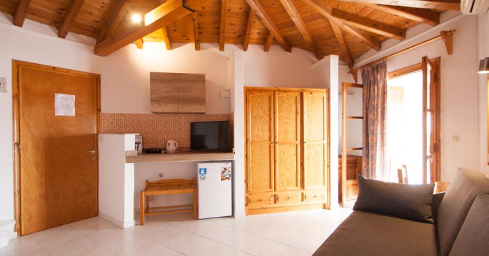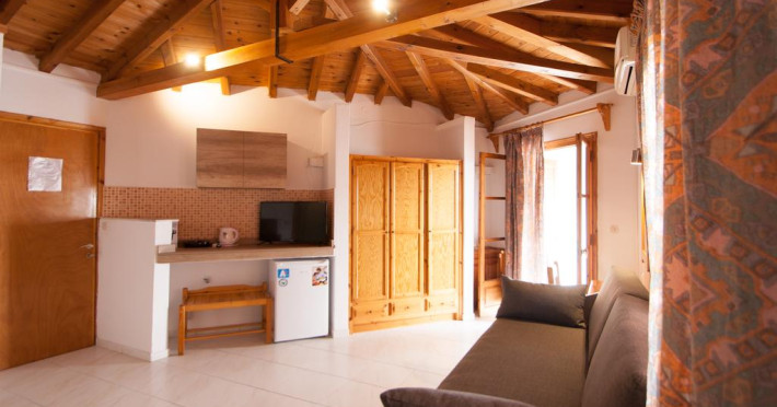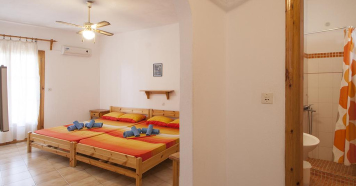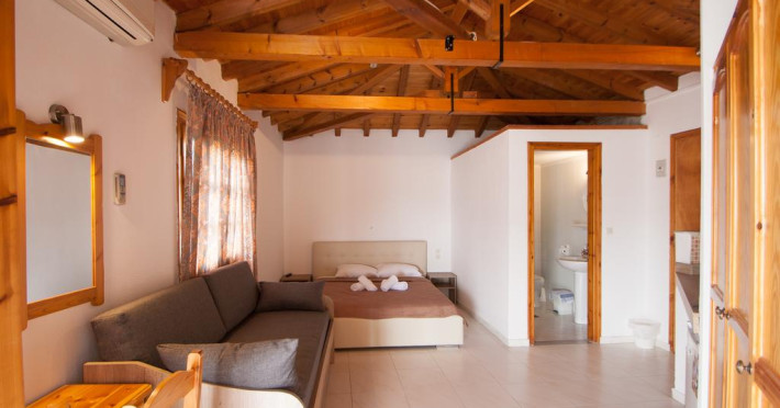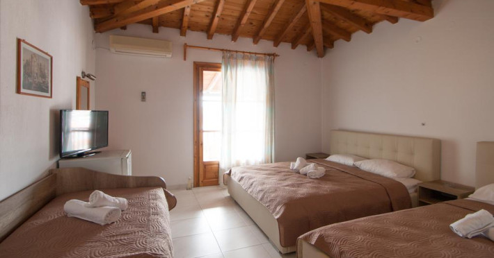 Fiecare cameră oferă cană-fierbător și mașină pentru prepare cafea sau ceai. Oaspeții pot solicita serviciul de room service pentru a servi masa sau diverse băuturi. Camerele confortabile de la Eliza Pension sunt dotate cu pardoseală de gresie/ marmură, aer condiționat, Tv și seif. În camere există baie cu foehn și articole de toaletă gratuite. Camerele au balcon cu vedere la mare sau la oraș, unde oaspeții pot admira apusul sau răsăritul soarelui. Oaspeții au acces gratuit la serviciul Wi-fi în camere. Toate camerele spațioase de la Eliza Pension au zonă de relaxare cu canapea, ceea ce oferă un plus de confort. În fiecare unitate de cazare există o bucătărie utilată cu frigider și ustensile de bucătărie. De asemenea, sunt disponibile o zonă de luat masa și un cuptor pentru prepararea mâncărurilor. Proprietatea oferă camere pentru familie cu o suprafață mai mare și un număr mai mare de paturi față de cele standard.