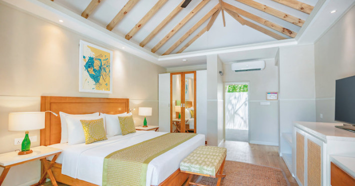 Resortul are un total de 112 camere este populara printre scafandri si ofera o receptie prietenoasa, cu o zona de relaxare, un magazin de suveniruri si o biblioteca. Restaurantul principal "Madi", restaurantul tip bufet exclusiv "Malamathi" pentru bungalouri cu apa si un bar ofera delicii culinare. Piscina cu bar la piscina si terasa la soare este aproape de plaja. Sezlonguri, umbrele si prosoape de baie sunt disponibile gratuit.