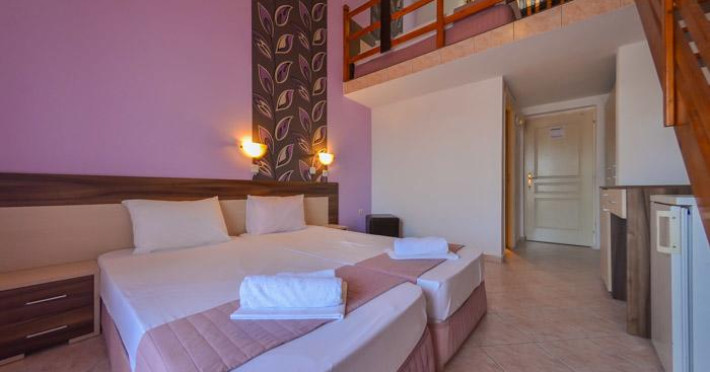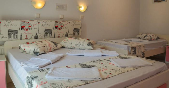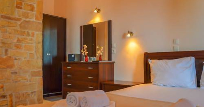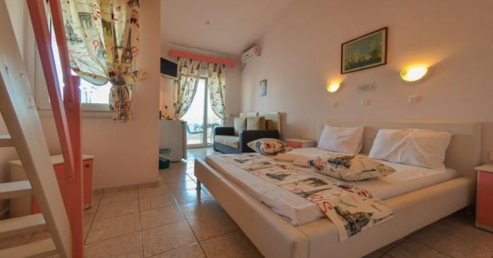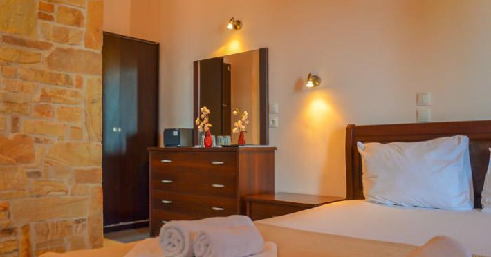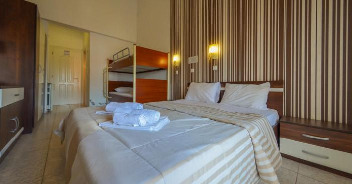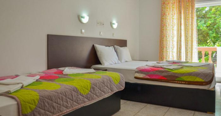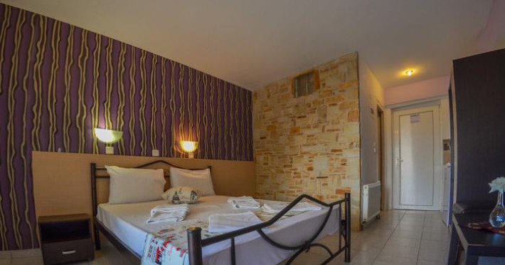 Camerele au balcon cu masă și scaune unde pot fi petrecute momente de relaxare. Camerele confortabile de la Ellas Hotel sunt dotate cu pardoseală de gresie/ marmură, aer condiționat și Tv cu canale prin satelit. Oaspeții au acces gratuit la serviciul Wi-fi în camere. Curățenia in cameră se face zilnic. Fiecare unitate de cazare are frigider. Proprietatea oferă camere pentru familie cu o suprafață mai mare și un număr mai mare de paturi față de cele standard. Se pot rezerva de asemenea camere pentru nefumători.