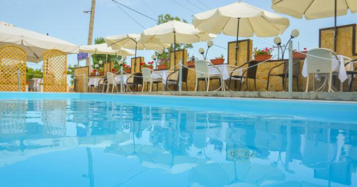 La Ellas Hotel oaspeții au la dispoziție un restaurant care servește mâncare à la carte. Preparate din bucătăria grecească așteaptă să fie degustate în fiecare zi. Masa poate fi servită atât în interior, cît si în aer liber, pe terasă, în funcție de vreme. Oaspeţii pot avea diverse băuturi răcoritoare sau alcoolice la bar.