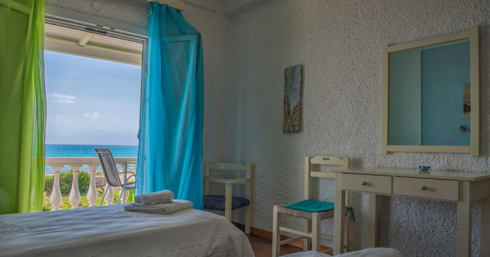 Fiecare cameră dispune de mașină pentru preparare cafea sau ceai și fierbător Unele camere au balcon cu vedere la mare, unde oaspeții pot admira apusul sau răsăritul soarelui. Camerele confortabile de la Elli Beach Villas au pardoseală de gresie/ marmură, aer condiționat, Tv cu canale prin satelit și seif. În camere există baie cu cadă sau duș ce are în dotare foehn și articole de toaletă gratuite. Oaspeții au acces gratuit la serviciul Wi-fi în camere. Curățenia in cameră se face zilnic. Toate camerele spațioase de la Elli Beach Villas au zonă de relaxare. Fiecare unitate de cazare include o chicinetă utilată cu frigider, plită de gătit și ustensile de bucătărie. De asemenea, sunt disponibile o zonă de luat masa și un cuptor pentru prepararea mâncărurilor. Proprietatea oferă camere pentru familie cu o suprafață mai mare și un număr mai mare de paturi față de cele standard.