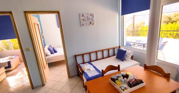 Ellinas Hotel pune la dispozitia oaspetilor sai urmatoarele facilitati: Wi-Fi gratuit inclus, aer conditionat, zona de luat masa in aer liber, gradina, parcare privata.