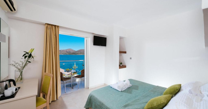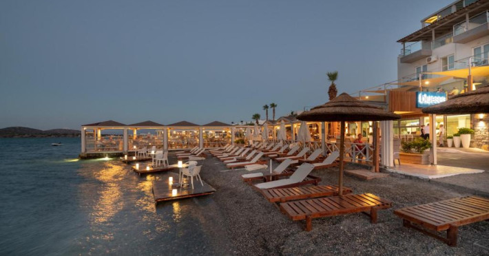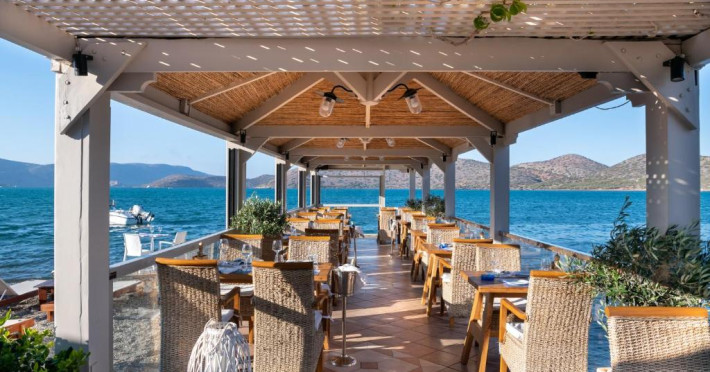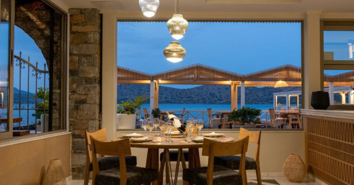 Restaurantul Blue Sea de pe faleză serveste specialităti grecesti si internationale. Oaspetii se pot relaxa cu un cocktail in barul din grădina de pe acoperis, admirand vederea la golful Elounda. Accesul WiFi este gratuit in zonele comune.