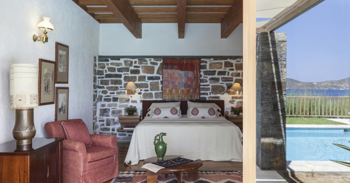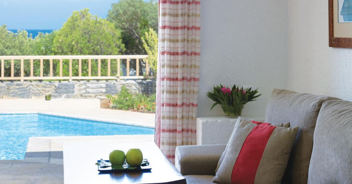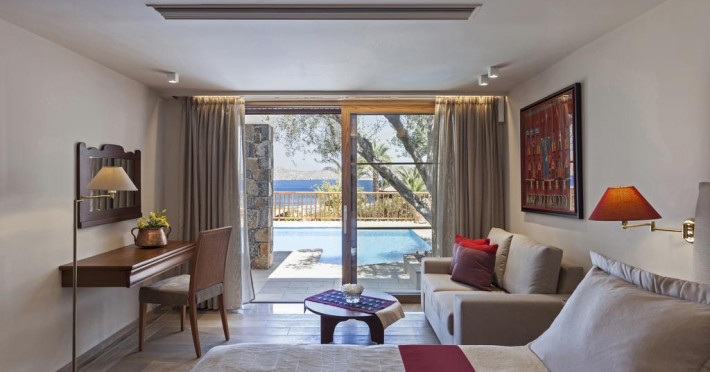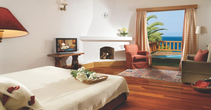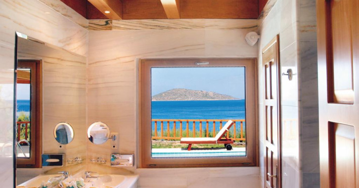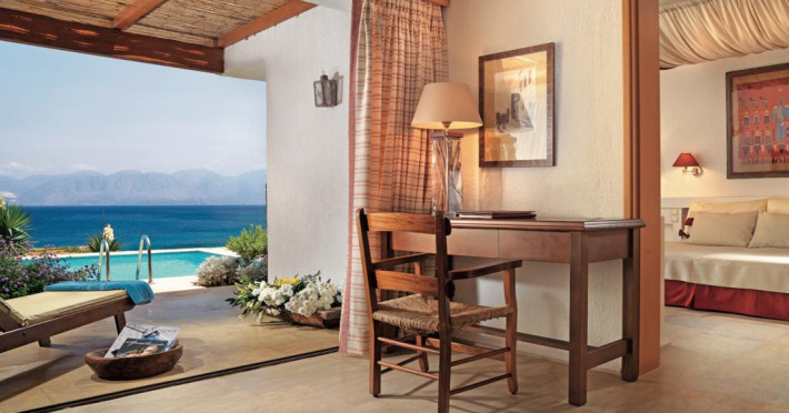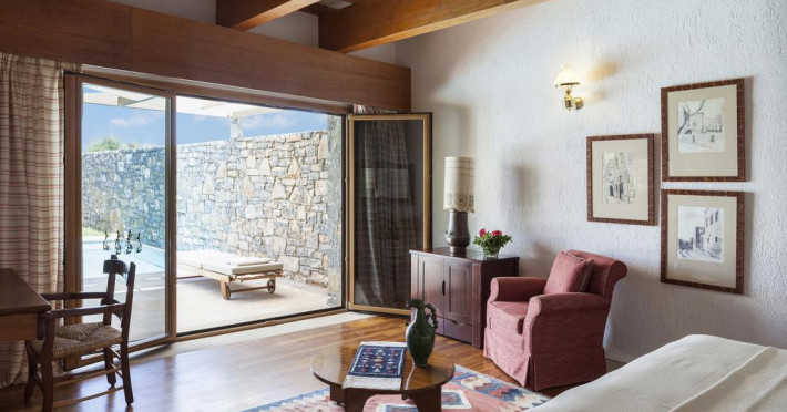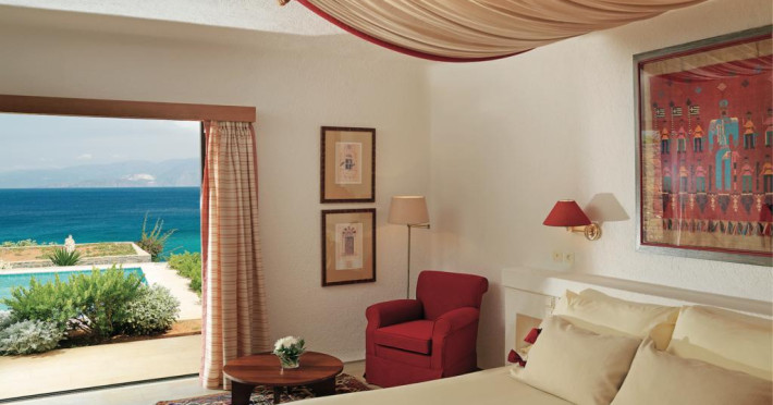 În camere există baie cu cadă sau duș ce are în dotare foehn și articole de toaletă gratuite. Camerele confortabile de la Elounda Mare au pardoseală de gresie/ marmură, aer condiționat, Tv cu canale prin satelit și seif. Unele camere au balcon cu vedere la mare, unde oaspeții pot admira apusul sau răsăritul soarelui. Fiecare cameră dispune de minibar. Oaspeții pot solicita serviciul de room service pentru a servi masa sau diverse băuturi. Oaspeții au acces gratuit la serviciul Wi-fi în camere. Curățenia in cameră se face zilnic. Anumite camere au zonă de relaxare cu canapea și cadă cu hidromasaj care asigură un plus de confort și răsfăț. Proprietatea oferă camere pentru familie cu o suprafață mai mare și un număr mai mare de paturi față de cele standard. Se pot rezerva de asemenea camere pentru nefumători.