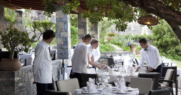 La Elounda Mare oaspeții au la dispoziție 3 restaurante unde pot savura mâncăruri delicioase, în stil bufet sau à la carte. Preparate din bucătăria grecească și internațională așteaptă să fie degustate în fiecare zi la micul dejun, prânz și cină. Masa poate fi servită atât în interior, cît si în aer liber, pe terasă, în funcție de vreme. Oaspeţii pot avea diverse băuturi răcoritoare sau alcoolice la bar. În cadrul proprietății există și un snack bar care servește băuturi și gustări. Pentru cei cu anumite nevoi de nutriție, Elounda Mare oferă meniuri pentru diete speciale.