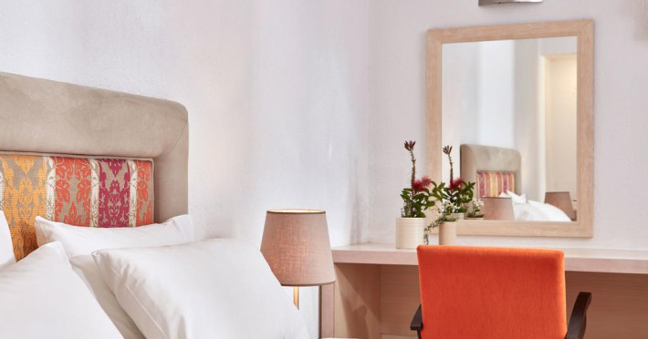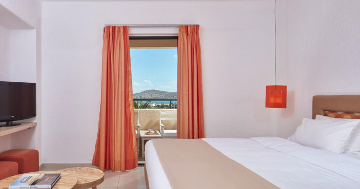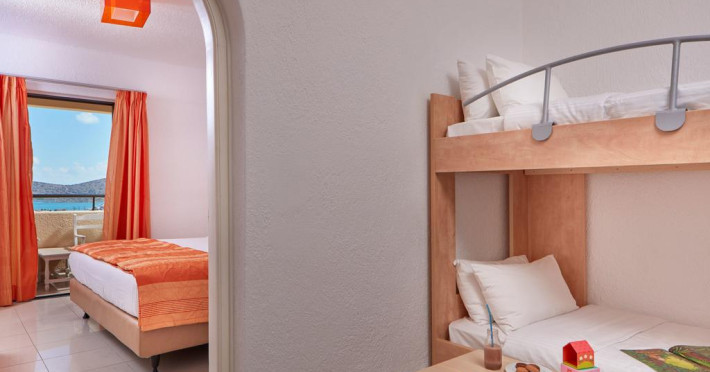Sunt disponibile 64 camere. Unele camere au balcon cu vedere la mare sau la piscină. Fiecare cameră oferă cană-fierbător și mașină pentru prepare cafea sau ceai. Oaspeții pot solicita serviciul de room service pentru a servi masa sau diverse băuturi. Camerele confortabile de la Elounda Palm au pardoseală de gresie/ marmură, aer condiționat, Tv cu canale prin satelit și seif. În camere există baie cu cadă sau duș, foehn, articole de toaletă gratuite, precum și halate de baie și papuci. Oaspeții au acces gratuit la serviciul Wi-fi în camere. Curățenia in cameră se face zilnic. Anumite camere au cadă cu hidromasaj care asigură un plus de confort și răsfăț. Proprietatea oferă camere pentru familie cu o suprafață mai mare și un număr mai mare de paturi față de cele standard. Se pot rezerva de asemenea camere pentru nefumători.