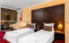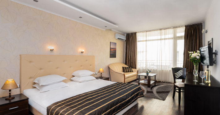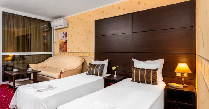 Toate camerele sunt renovate si dispun de aer conditionat, telefon, mini bar, TV cu programe prin satelit, masa si scaun, baie cu dus si uscator de par, balcon.