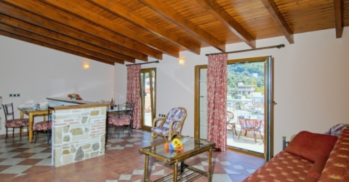 Accesul la apartament se poate face atat pe jos, cat si cu masina, existand posibilitatea parcarii masinilor pe strada pe care este amplasata proprietatea. Terasele existente in fiecare apartament permit vizitatorilor sa se relaxeze in orice moment privind minunatele peisaje ale Greciei. De asemenea apartamentele sunt dotate cu baie proprie, bucatarie, seif, televizor si uscator de par.