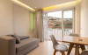 Dotari camere: Cazarea include camere spatioase, cu una sau doua camere, dotate cu T.V., aer conditionat, bucatarie utilata si balcoane mari cu vedere catre mare sau munte. Unitatile sunt concepute pentru confortul oaspetilor si sunt adecvate atat pentru cupluri, cat si pentru familii. Baby cot este disponibil la cerere.