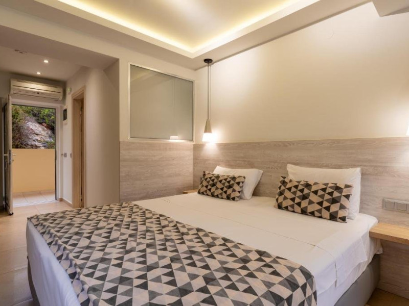 Facilitati hotel: Proprietatea pune la dispozitie piscina cu Pool Bar, spatii de relaxare si camere echipate cu facilitati esentiale. Oaspetii pot beneficia optional de mic dejun, servit la bar, contra cost. In apropiere se afla un mini market, iar marea este accesibila la o distanta scurta. Elpis Studio Apartments ofera si servicii de inchiriere auto cu masini moderne, cu optiunea de preluare direct de la aeroport si tarife avantajoase pentru oaspetii cazati.