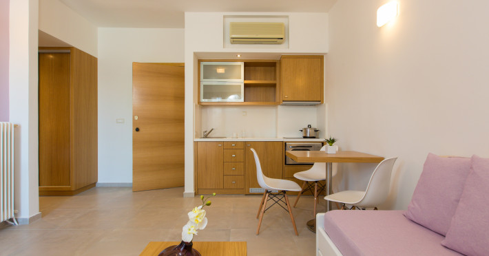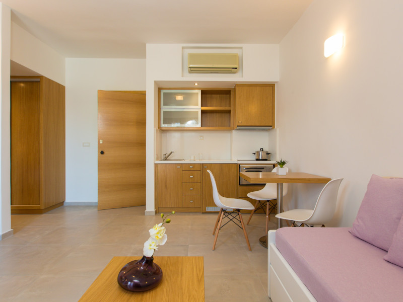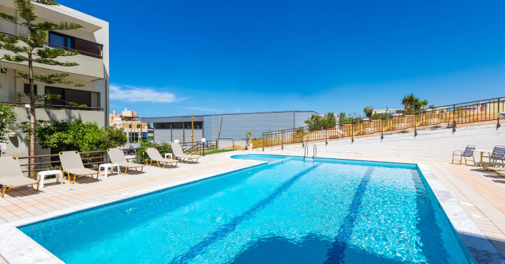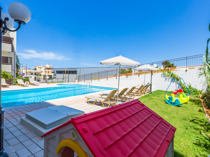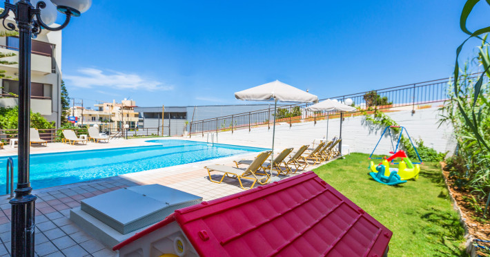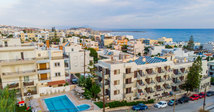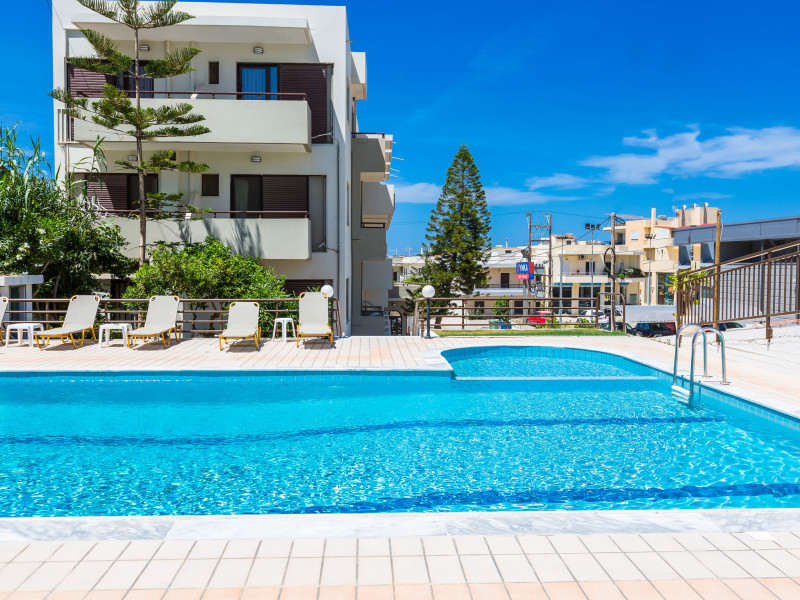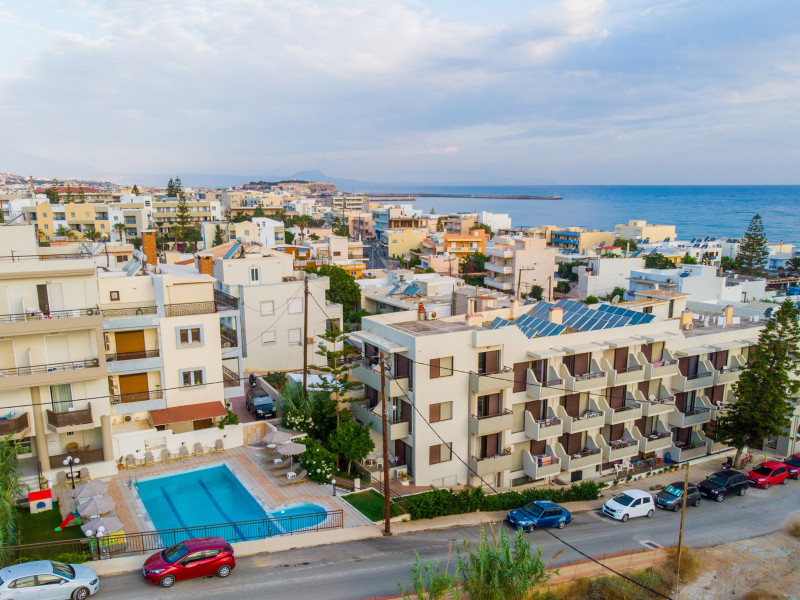 The hotel is open all year around, offering 33 tastefully decorated Studios and apartments with fully-equipped kitchenettes, Air condition, television with satellite channels and a furnished balcony.The hotel features an outdoor swimming pool with children's section and sun loungers around the pool free of charge. A Dining area where breakfast is served and Wireless internet free of charge throughout the Hotel.During summer months the Front Desk operates 24 hours every day. From October to April you can always find someone from 8.00 am to 15.00 pm and 18.00 pm to 21.00 pm.