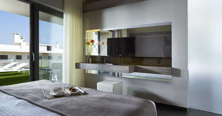 Sunt disponibile 83 camere. Unele camere au balcon cu vedere la mare sau la grădină. Camerele de la Elysium Boutique sunt dotate cu aer condiționat, Tv cu canale prin satelit și seif. În camere există baie cu cadă sau duș, foehn, articole de toaletă gratuite, precum și halate de baie și papuci. Fiecare cameră dispune de un aparat pentru preparare cafea sau ceai, cană-fierbător și minibar. Oaspeții pot solicita serviciul de room service pentru a servi masa sau diverse băuturi. Oaspeții au acces gratuit la serviciul Wi-fi în camere. Curățenia in cameră se face zilnic. Anumite camere au cadă cu hidromasaj care asigură un plus de confort și răsfăț. Proprietatea oferă camere pentru nefumători.