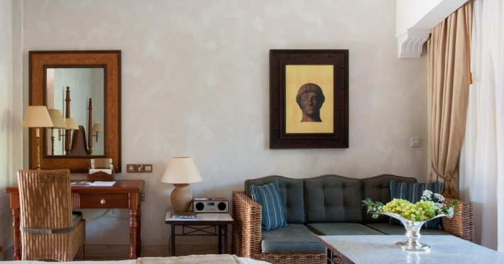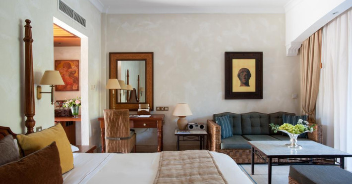 Unele camere au balcon cu vedere la mare sau la piscină. În camere există baie cu cadă sau duș ce are în dotare foehn și articole de toaletă gratuite. Fiecare cameră dispune de minibar și cană-fierbător. Oaspeții pot solicita serviciul de room service pentru a servi masa sau diverse băuturi. Camerele confortabile de la Elysium Hotel au pardoseală de gresie/ marmură, aer condiționat, Tv cu canale prin satelit și seif. Oaspeții au acces gratuit la serviciul Wi-fi în camere. Curățenia in cameră se face zilnic. Anumite camere au cadă cu hidromasaj care asigură un plus de confort și răsfăț. Proprietatea oferă camere pentru familie cu o suprafață mai mare și un număr mai mare de paturi față de cele standard. Se pot rezerva de asemenea camere pentru nefumători.