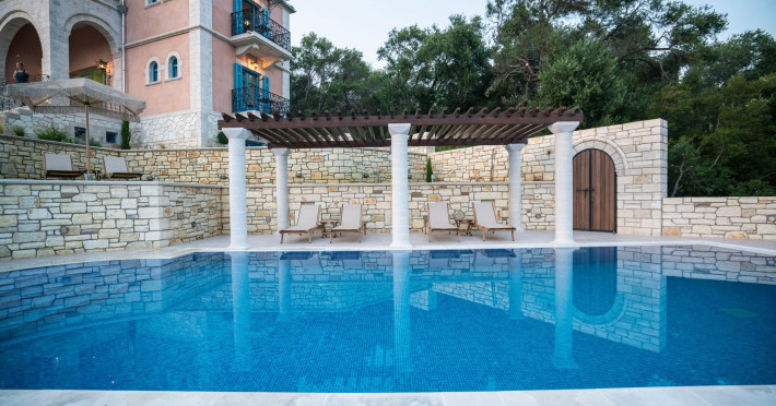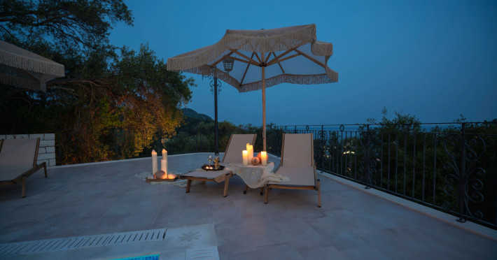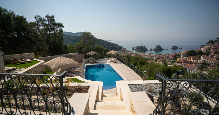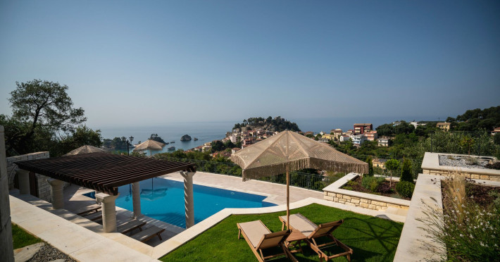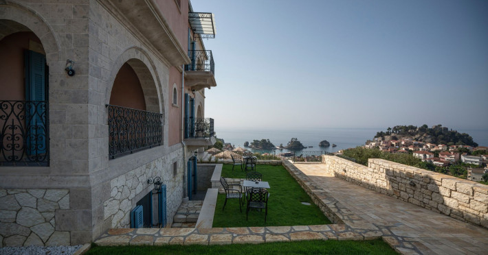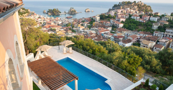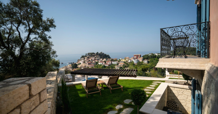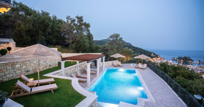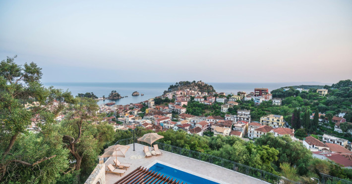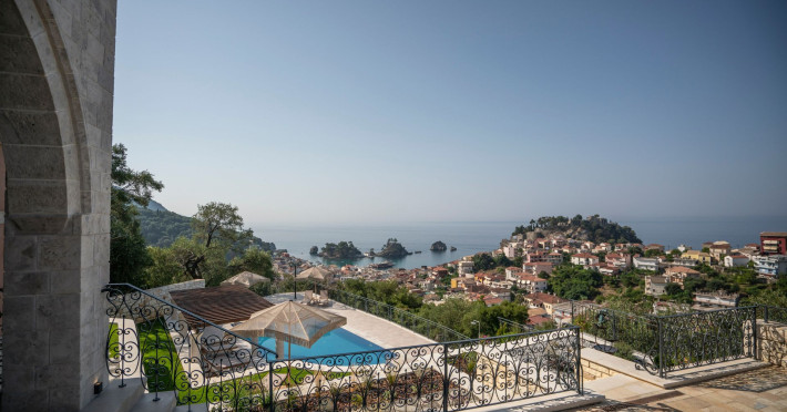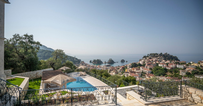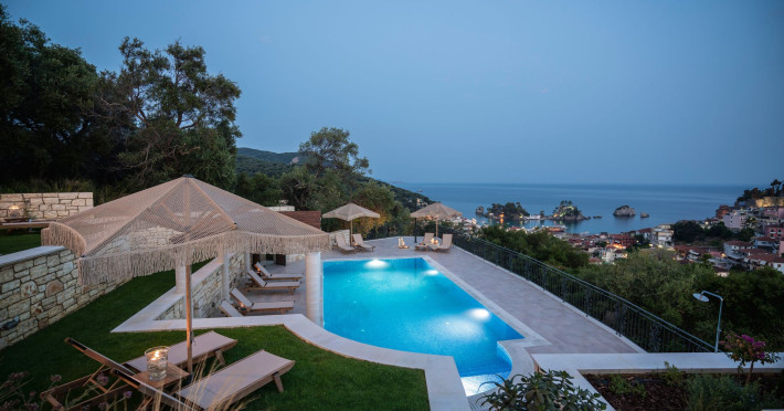 ELYSIUM is located in an elevated position just above the dreamy Parga in northwestern Greece. With stunning views of the city of Parga, the picturesque island opposite the port, the castle and the sandy beaches, this villa enjoys an idyllic holiday environment. A mixture of bright and earthy colors, with carved wooden furniture, stone, and traditional tiles give this villa a fresh but relaxed and classic feel. ELYSIUM has 7 equipped studios for 2 people and a Grand Suite with 3 bedrooms. It offers comfortable interiors, and a breathtaking panoramic view from the hillside onto the turquoise waters. With a dream pool with sunbeds, umbrellas wonderfully refreshing after hours spent relaxing in the sun. Take a dip in the heat or retreat with a book to one of the shady spots on the terrace. There is nothing better as you watch the sunset and the return of the ships from the excursion to Paxos. The city sets and the castle lights come on creating a magic that you do not want to miss. A wedding proposal from the balcony of the room, and after the dream of marriage, become a reality opposite the island of Panagia. An unforgettable ceremony, and countless photos, capture the unique moments in a dreamy and at the same time unique environment! A short distance of a few minutes, a complex of colorful houses built on the slope of the rock is Parga. Popular, Parga, full of photogenicity, offers excellent choices from bakeries, cafes, shops and local taverns that are scattered along the picturesque streets and the promenade. Visit the ruins of the Venetian castle and enjoy the incredible view from the top! The beaches around Parga are one of the most impressive in Greece, offering kilometers of sandy beach, crystal clear waters and a variety of water sports.Datorita dinamicitatii domeniului disponibilitatea ofertelor se modifica de la un moment la altul. De aceea ofertele sunt valabile in limita locurilor disponibile. Agentia nu este responsabila pentru eventualele neconcordante care pot aparea intre informatiile privind tarifele si alte detalii din site si informatiile primite in agentie. In aceste cazuri vor avea prioritate, intotdeauna, informatiile primite in agentie.