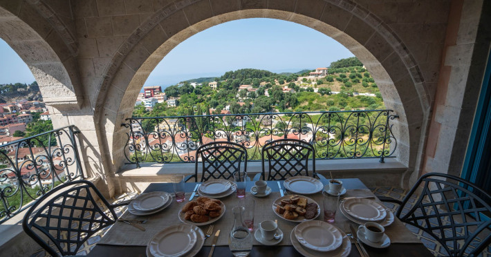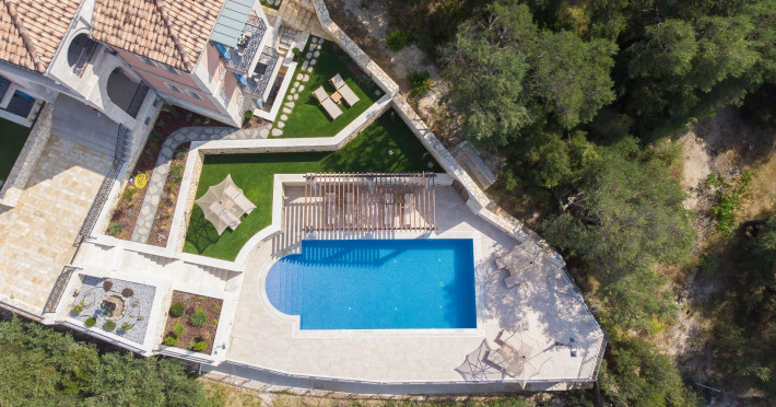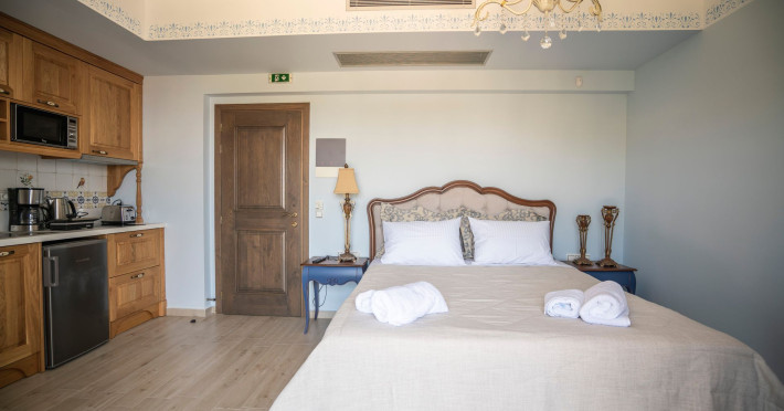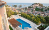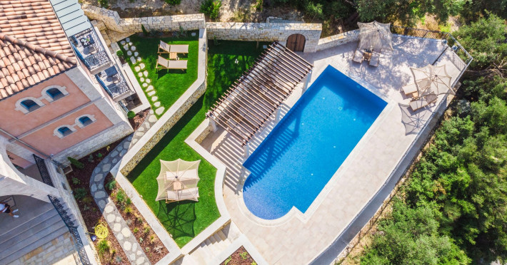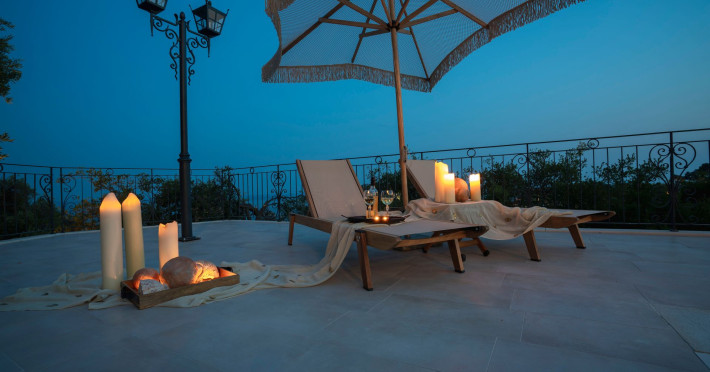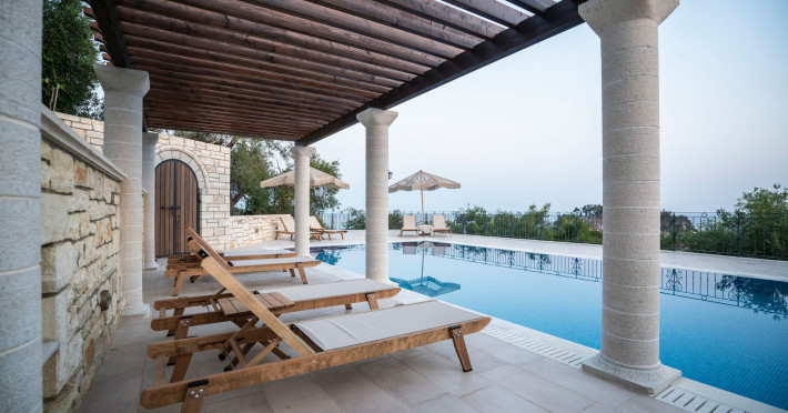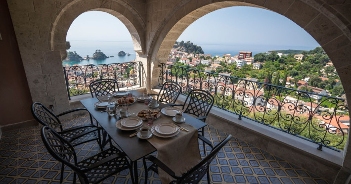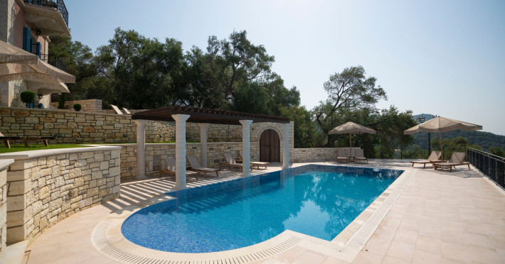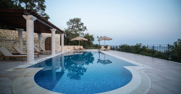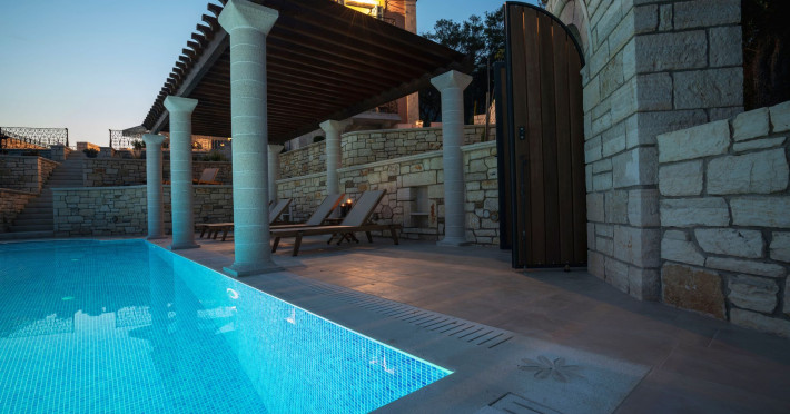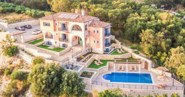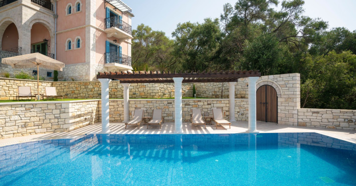 ELYSIUM is located in an elevated position just above the dreamy Parga in northwestern Greece. With stunning views of the city of Parga, the picturesque island opposite the port, the castle and the sandy beaches, this villa enjoys an idyllic holiday environment. A mixture of bright and earthy colors, with carved wooden furniture, stone, and traditional tiles give this villa a fresh but relaxed and classic feel. ELYSIUM has 7 equipped studios for 2 people and a Grand Suite with 3 bedrooms. It offers comfortable interiors, and a breathtaking panoramic view from the hillside onto the turquoise waters. With a dream pool with sunbeds, umbrellas wonderfully refreshing after hours spent relaxing in the sun. Take a dip in the heat or retreat with a book to one of the shady spots on the terrace. There is nothing better as you watch the sunset and the return of the ships from the excursion to Paxos. The city sets and the castle lights come on creating a magic that you do not want to miss. A wedding proposal from the balcony of the room, and after the dream of marriage, become a reality opposite the island of Panagia. An unforgettable ceremony, and countless photos, capture the unique moments in a dreamy and at the same time unique environment! A short distance of a few minutes, a complex of colorful houses built on the slope of the rock is Parga. Popular, Parga, full of photogenicity, offers excellent choices from bakeries, cafes, shops and local taverns that are scattered along the picturesque streets and the promenade. Visit the ruins of the Venetian castle and enjoy the incredible view from the top! The beaches around Parga are one of the most impressive in Greece, offering kilometers of sandy beach, crystal clear waters and a variety of water sports.Datorita dinamicitatii domeniului disponibilitatea ofertelor se modifica de la un moment la altul. De aceea ofertele sunt valabile in limita locurilor disponibile. Agentia nu este responsabila pentru eventualele neconcordante care pot aparea intre informatiile privind tarifele si alte detalii din site si informatiile primite in agentie. In aceste cazuri vor avea prioritate, intotdeauna, informatiile primite in agentie.
