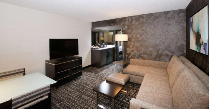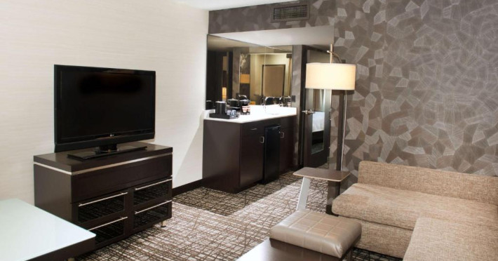 Fiecare suită de la Embassy Las Vegas are 2 televizoare cu ecran plat, cuptor cu microunde și frigider. Suitele spațioase oferă o zonă separată de living cu un birou mare.
