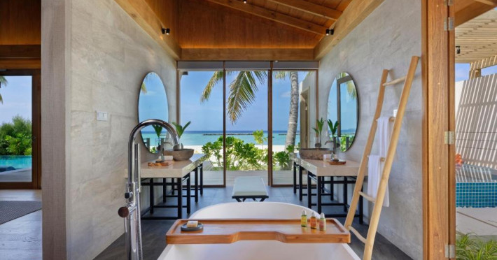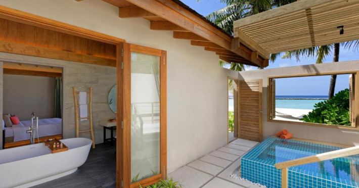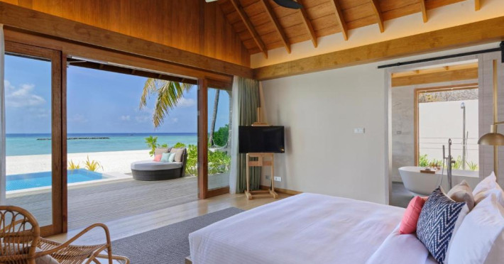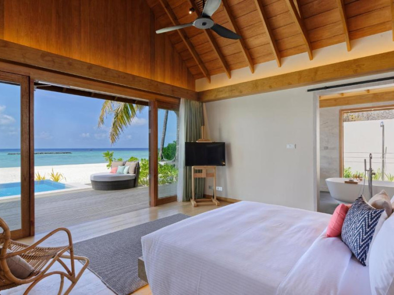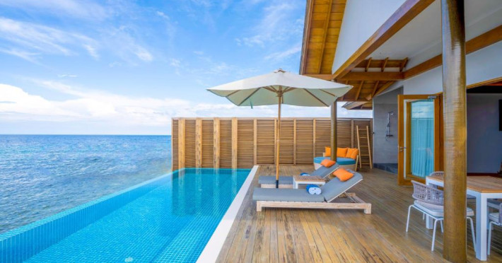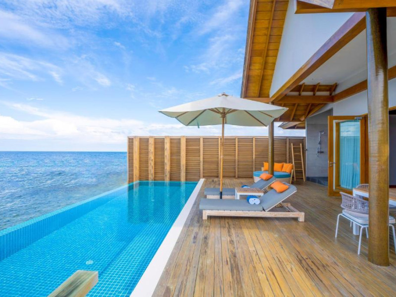 Emerald Faarufushi Resort & Spa - Deluxe All Inclusive se află pe malul mării in Raa Atoll și oferă cazare de 5 stele, biciclete gratuite, o grădină și un bar. Printre facilitățile disponibile la această proprietate se numără room-service și un serviciu de concierge, precum și WiFi gratuit in intreaga proprietate. Acest complex oferă o piscină in aer liber, un centru de fitness, club de noapte și un club pentru copii.