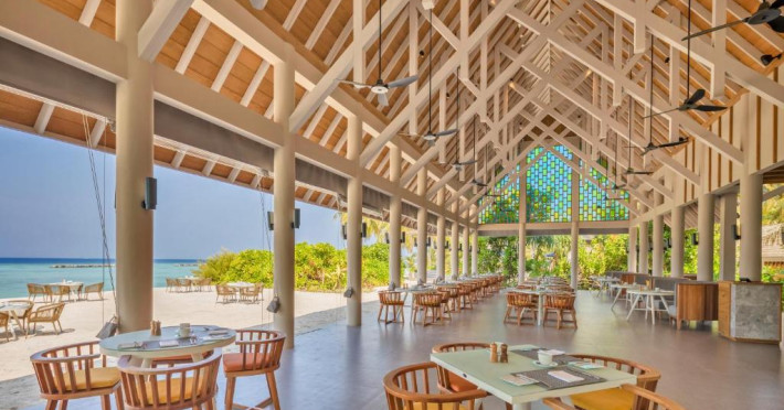 La proprietate este disponibil in fiecare zi un mic dejun tip bufet, continental sau asiatic. Emerald Faarufushi Resort & Spa - Deluxe All Inclusive are un restaurant care servește mancăruri din bucătăria braziliană, chinezească și japoneză. La cerere, sunt disponibile și preparate vegetariene, fără lactate și halal.