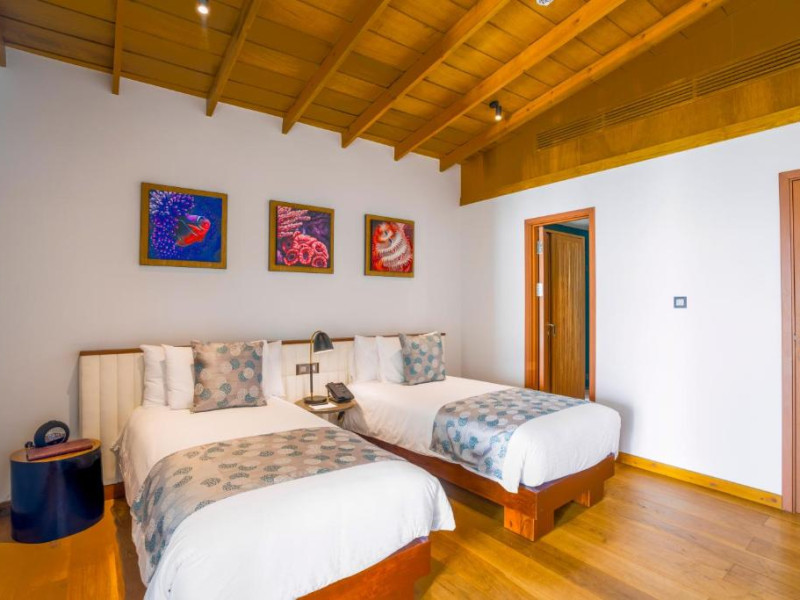 Acest complex pune la dispoziția oaspeților camere cu aer condiționat, birou, cafetieră, un minibar, cutie de valori, televizor cu ecran plat, terasă și baie proprie cu bideu. Baia proprie oferă un duș, articole de toaletă gratuite și un uscător de păr. La Emerald Faarufushi Resort & Spa - Deluxe All Inclusive, toate camerele sunt echipate cu lenjerie de pat și prosoape.