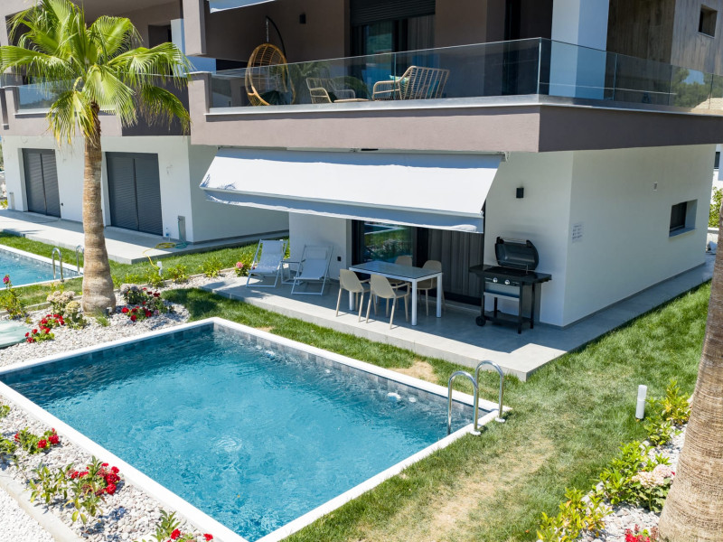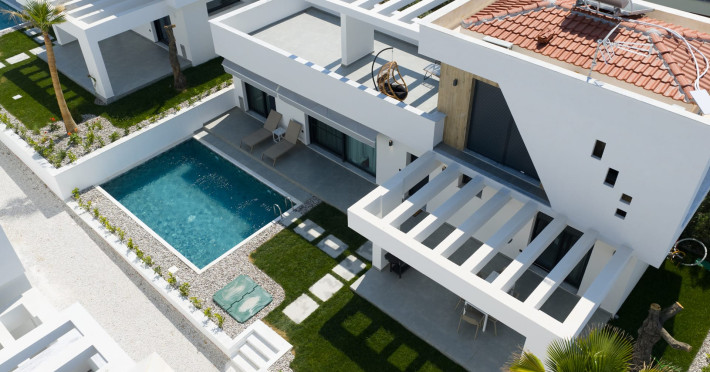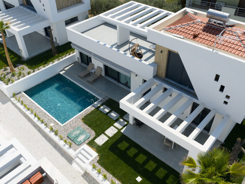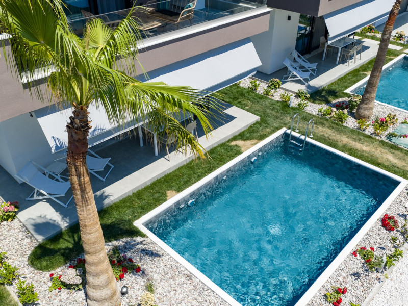 Escape to Emerald Island Villas, a luxurious retreat in the lush surroundings of Skala Rachoniou, just 70 meters from the crystal-clear waters of the Aegean Sea. Located on the beautiful island of Thassos in the Kavala Prefecture, this exclusive complex features 29 independent villas, each offering the ultimate in comfort, style, and privacy — including your very own private pool.Designed with refined elegance and built using premium materials, every villa combines modern aesthetics with island charm. Whether you're basking in the sun by your pool, enjoying a glass of wine on your private terrace, or taking a short stroll to the beach, Emerald Island Villas offer a peaceful sanctuary for relaxation and rejuvenation.Surrounded by landscaped gardens and offering convenient private parking, the complex is ideal for families, couples, and groups of friends seeking a serene getaway with all the comforts of home and the indulgences of a luxury resort.Enjoy the gentle Aegean breeze, soak in the sun, and create unforgettable memories — all from the privacy of your own villa with a pool.Emerald Island Villas — where every stay is a splash of luxuryEscape to Emerald Island Villas, a luxurious retreat in the lush surroundings of Skala Rachoniou, just 70 meters from the crystal-clear waters of the Aegean Sea. Located on the beautiful island of Thassos in the Kavala Prefecture, this exclusive complex features 29 independent villas, each offering the ultimate in comfort, style, and privacy — including your very own private pool.Designed with refined elegance and built using premium materials, every villa combines modern aesthetics with island charm. Whether you're basking in the sun by your pool, enjoying a glass of wine on your private terrace, or taking a short stroll to the beach, Emerald Island Villas offer a peaceful sanctuary for relaxation and rejuvenation.Surrounded by landscaped gardens and offering convenient private parking, the complex is ideal for families, couples, and groups of friends seeking a serene getaway with all the comforts of home and the indulgences of a luxury resort.Enjoy the gentle Aegean breeze, soak in the sun, and create unforgettable memories — all from the privacy of your own villa with a pool.Emerald Island Villas — where every stay is a splash of luxury