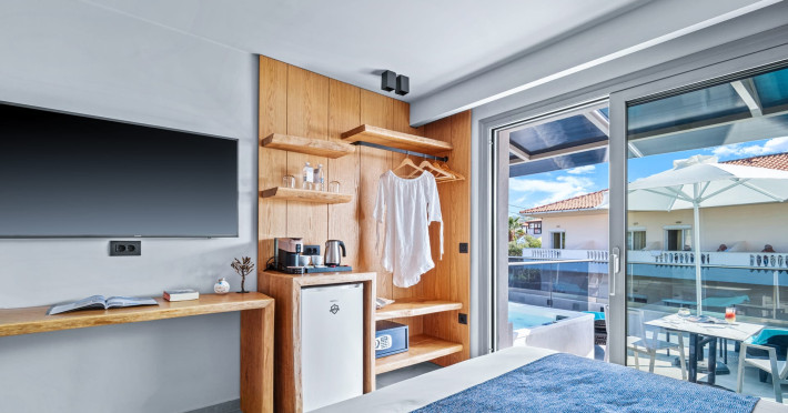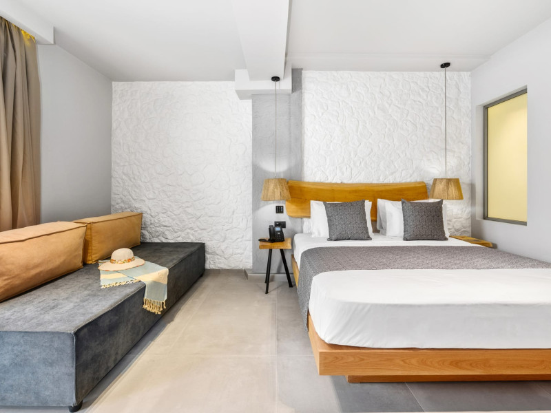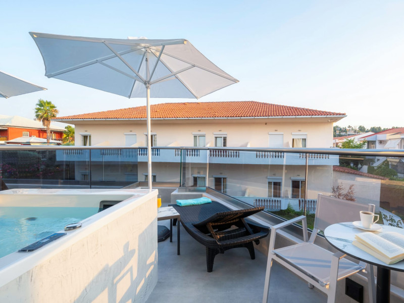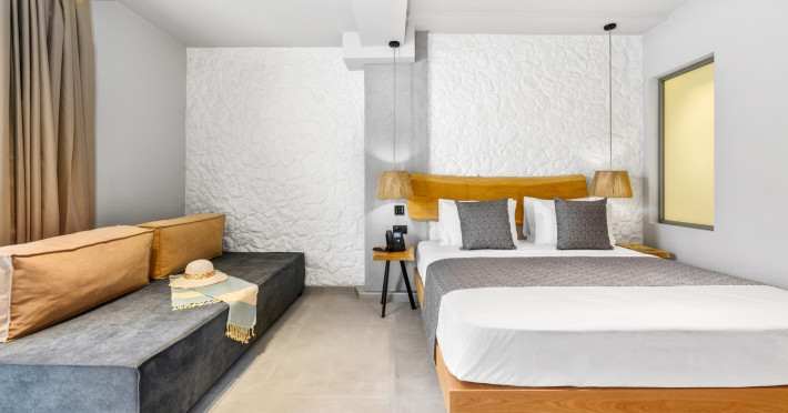Just a breath away from the beach with the golden sand and crystal clear waters, all suites include reserved private sunbeds at the beach.