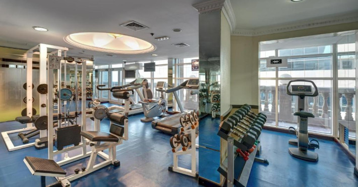 O sală de fitness cu echipamente necesare pentru o gamă variată de exerciții fizice este la dispoziția celor interesați.