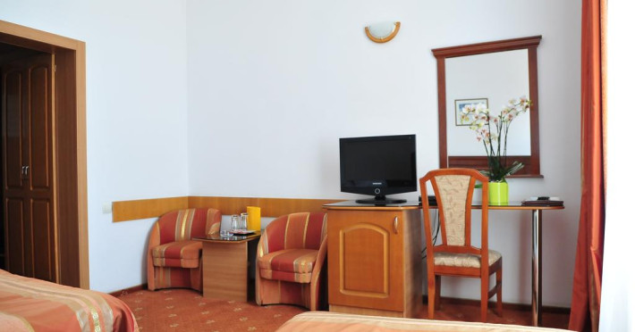 Hotelul Emma Est se afla la 2 km de Aeroportul din Craiova si la aproximativ 5 km de Parcul Romanescu, cel mai mare parc urban din Europa de Est. Facilitati hotel: restaurant, salon evenimente, 2 sali de conferinta cu o capacitate de 20, respectiv 150 persoane, parcare privata, spatiu de depozitare bagaje, serviciu de corespondenta, trezirea clientilor, seif la receptie. Facilitati camere: telefon international, sistem de incalzire, aer conditionat, produse cosmetice, TV LCD - satelit international, minibar, uscator de par, birou de lucru, internet gratuit WI-FI, baie cu cada/cabina de dus, halat de baie, room service.Datorita dinamicitatii domeniului disponibilitatea ofertelor se modifica de la un moment la altul. De aceea ofertele sunt valabile in limita locurilor disponibile. Agentia nu este responsabila pentru eventualele neconcordante care pot aparea intre informatiile privind tarifele si alte detalii din site si informatiile primite in agentie. In aceste cazuri vor avea prioritate, intotdeauna, informatiile primite in agentie.