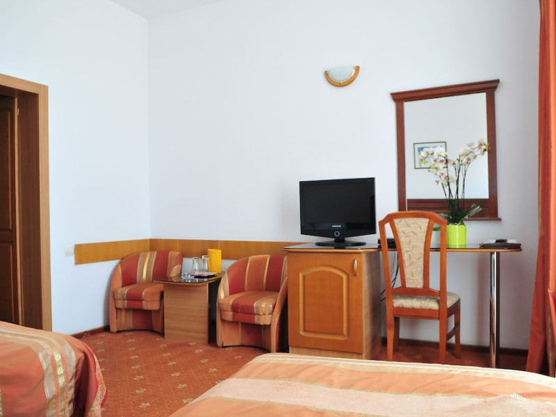 Hotel Emma Est offers air-conditioned rooms with attached bathroom with free WiFi, 1.2 mi from the Craiova Airport and around 3.1 mi from the Romanescu Park, the largest urban park in Eastern Europe. All rooms feature a flat-screen TV, a mini-bar and a bathroom with free toiletries and bathrobe. A hairdryer and ironing facilities are available on request and free of charge. The restaurant on site serves international cuisine and traditional Romanian dishes. The Craiova Train Station, the Art Museum and the Museum of Oltenia are reachable within a 10-minute drive. Free private parking is available at Hotel Emma Est.No special conditions apply for groups. Wired internet is available in the hotel rooms and is free of charge. Free private parking is available on site (reservation is not needed). Pets are not allowed. Children of all ages are allowed. Children 7 and under stay for free when using an existing bed. People 11 and up stay for 60Â lei per person, per night when using an available extra bed. You havent added any cribs. Any type of extra bed or crib is upon request and needs to be confirmed by management. Additional fees are not calculated automatically in the total cost and will have to be paid for separately during your stay.Checkin Time: 14:00Checkout End Time: 12:00Datorita dinamicitatii domeniului disponibilitatea ofertelor se modifica de la un moment la altul. De aceea ofertele sunt valabile in limita locurilor disponibile. Agentia nu este responsabila pentru eventualele neconcordante care pot aparea intre informatiile privind tarifele si alte detalii din site si informatiile primite in agentie. In aceste cazuri vor avea prioritate, intotdeauna, informatiile primite in agentie.