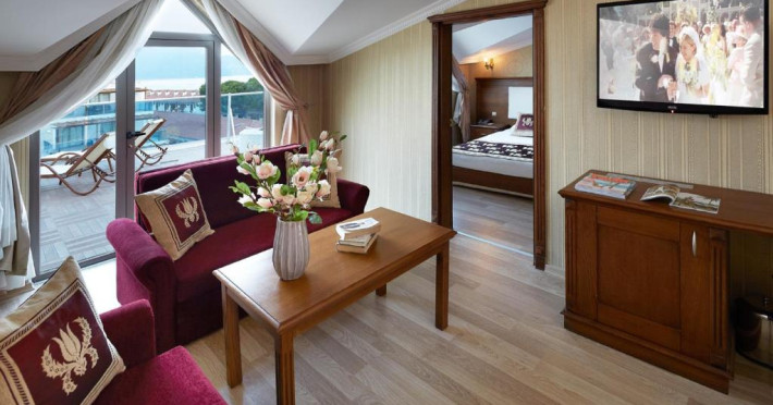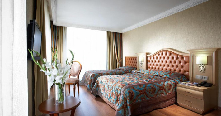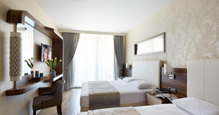 Unele camere au balcon cu vedere la mare. În camere există baie cu cadă sau duș prevăzută cu foehn. Camerele luminoase de la Emre Hotels sunt dotate cu gresie sau parchet, aer condiționat, Tv și seif. Fiecare cameră dispune de minibar. Oaspeții pot solicita serviciul de room service pentru a servi masa sau diverse băuturi. Oaspeții au acces gratuit la serviciul Wi-fi în camere. Curățenia in cameră se face zilnic. Proprietatea oferă camere pentru familie cu o suprafață mai mare și un număr mai mare de paturi față de cele standard.