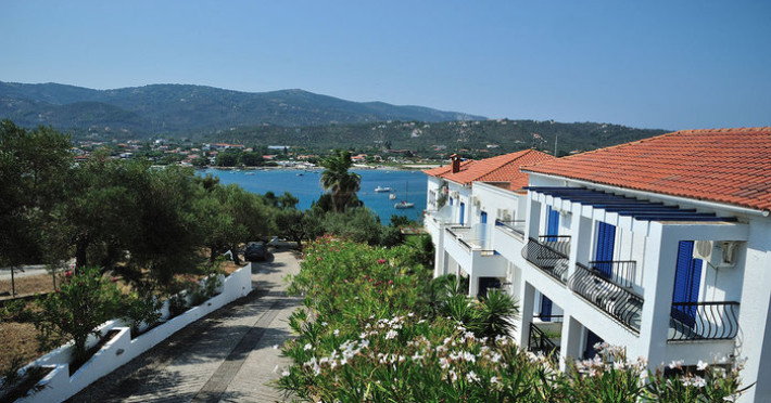 Hotelul este inconjurat de o frumoasa padure de pini, ofera o piscina cu terasa amenajata cu sezlonguri si un pool bar. Accesul la internet Wi-Fi este gratuit în zonele publice ale hotelului. La 800 de metri distanta de hotel, există un club de tenis cu 6 terenuri .Personalul biroului de turism poate organiza servicii gratuite de transfer în orăşelul Skiathos.