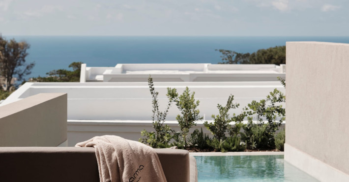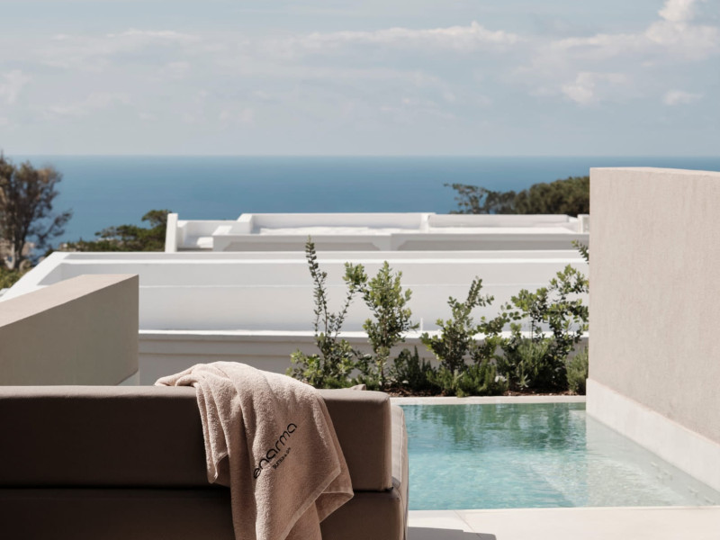 Enarma Suites & Spa invites you to indulge in an intimate and luxurious retreat nestled in the charming village of Megalochori, Santorini. With a commitment to eco-conscious design, the property features 18 beautifully appointed rooms, blending minimalist elegance with modern comforts. Each suite is designed for relaxation, offering private terraces with stunning views of the Aegean Sea. Enjoy rejuvenating treatments at the spa, unwind in the sauna or hammam, or take a dip in the jacuzzi swimming pool for the ultimate relaxation. For those seeking an active experience, the gym and water sports activities provide a perfect balance of well-being and adventure.The hotel’s signature restaurant serves Mediterranean-inspired dishes, offering guests an authentic taste of Santorini, with the option of room service for a more private dining experience. Additionally, Enarma Suites & Spa offers seamless transport services, including transfers to and from the airport or port, ensuring a smooth arrival and departure. With personalized concierge services, the team is always on hand to help arrange exclusive experiences, from private boat tours to wine tastings. Whether you're looking to unwind in luxury, explore the local village, or enjoy a day filled with adventure, Enarma provides the perfect combination of comfort, serenity, and modern amenities. The tranquil atmosphere and impeccable service guarantee an unforgettable stay.Enarma Suites & Spa invites you to indulge in an intimate and luxurious retreat nestled in the charming village of Megalochori, Santorini. With a commitment to eco-conscious design, the property features 18 beautifully appointed rooms, blending minimalist elegance with modern comforts. Each suite is designed for relaxation, offering private terraces with stunning views of the Aegean Sea. Enjoy rejuvenating treatments at the spa, unwind in the sauna or hammam, or take a dip in the jacuzzi swimming pool for the ultimate relaxation. For those seeking an active experience, the gym and water sports activities provide a perfect balance of well-being and adventure.The hotel’s signature restaurant serves Mediterranean-inspired dishes, offering guests an authentic taste of Santorini, with the option of room service for a more private dining experience. Additionally, Enarma Suites & Spa offers seamless transport services, including transfers to and from the airport or port, ensuring a smooth arrival and departure. With personalized concierge services, the team is always on hand to help arrange exclusive experiences, from private boat tours to wine tastings. Whether you're looking to unwind in luxury, explore the local village, or enjoy a day filled with adventure, Enarma provides the perfect combination of comfort, serenity, and modern amenities. The tranquil atmosphere and impeccable service guarantee an unforgettable stay.