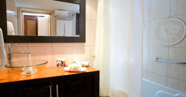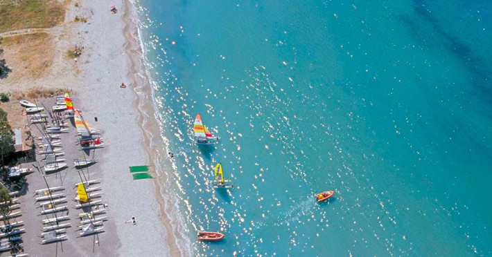 Enodia Hotel are în apropiere o plajă cu nisip. Pe plajă există șezlonguri și umbrele de plajă.
