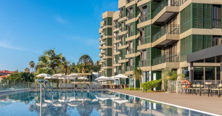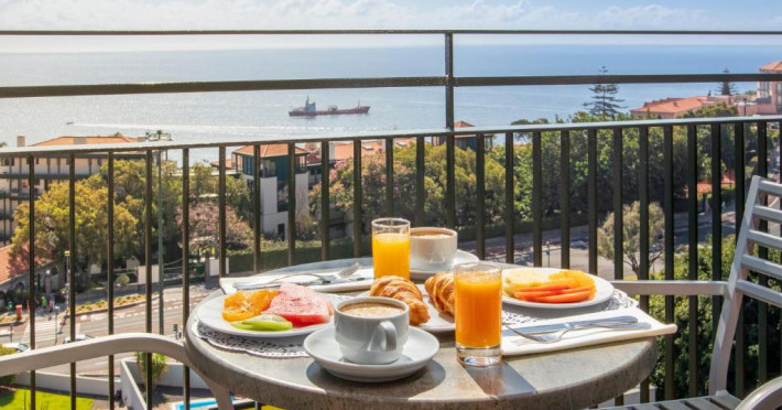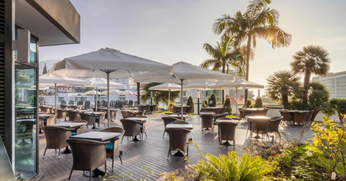 Restaurantul principal servește preparate internaționale și specialități portugheze, iar barul de la piscină este locul perfect pentru cocktailuri și gustări ușoare. Piscina exterioară, inconjurată de șezlonguri și umbrele, oferă un spațiu ideal pentru relaxare sub soarele Madeirei.