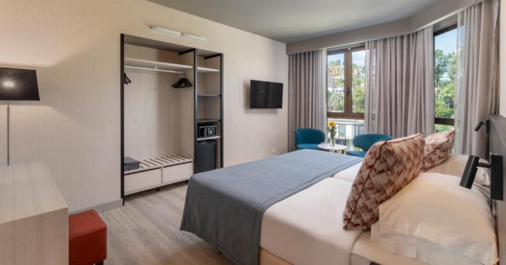 Camerele luminoase și confortabile beneficiază de balcoane private, majoritatea cu vedere spre ocean sau spre grădinile hotelului. Facilitățile de wellness includ o piscină interioară incălzită, saună, baie turcească și sală de fitness modernă.
