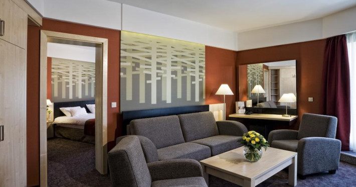 Near Bear Lake. Located in Sovata, Ensana Bradet is a 1-minute drive from Bear Lake and 13 minutes from Praid Salt Mine. This 4-star hotel is 1.6 mi (2.6 km) from Lacu Ursu and 27.7 mi (44.6 km) from Violins Monument. Make yourself at home in one of the 93 air-conditioned rooms featuring minibars and flat-screen televisions. Rooms have private balconies. Complimentary wireless Internet access keeps you connected, and cable programming is available for your entertainment. Private bathrooms with bathtubs or showers feature complimentary toiletries and hair dryers. Enjoy a meal at the restaurant or snacks in the hotels coffee shop/cafe. Relax with your favorite drink at the bar/lounge or the poolside bar. A complimentary buffet breakfast is served daily from 7 AM to 10:30 AM. Pamper yourself with onsite massages, body treatments, and facials. Youre sure to appreciate the recreational amenities, which include 6 indoor swimming pools, a sauna, and a fitness center. Additional amenities at this hotel include complimentary wireless Internet access, a hair salon, and a television in a common area.Datorita dinamicitatii domeniului disponibilitatea ofertelor se modifica de la un moment la altul. De aceea ofertele sunt valabile in limita locurilor disponibile. Agentia nu este responsabila pentru eventualele neconcordante care pot aparea intre informatiile privind tarifele si alte detalii din site si informatiile primite in agentie. In aceste cazuri vor avea prioritate, intotdeauna, informatiile primite in agentie.