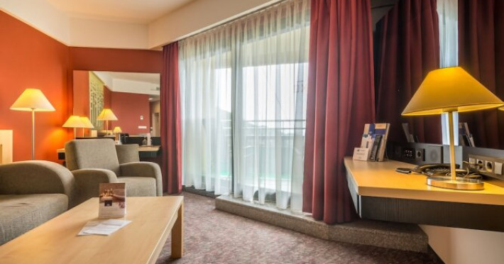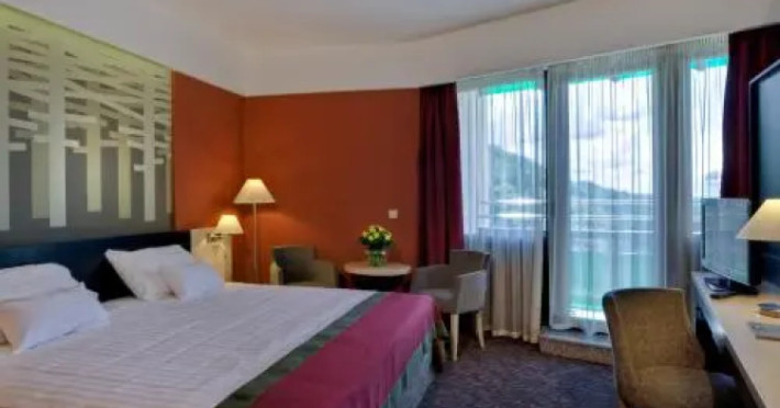 Good choice if youre looking forward to taking some rest at the hotel as much as to walking around the city. Hotel Ensana Bradet is located in Sovata. This hotel is located minutes away from the city center.Good choice if youre looking forward to taking some rest at the hotel as much as to walking around the city. Hotel Ensana Bradet is located in Sovata. This hotel is located minutes away from the city center.Spend an evening in a nice atmosphere of the bar. You can stop by the restaurant. If you cant live without coffee, drop by the cafe. Free Wi-Fi is available on the territory. Ask for more information when checking in.Specially for tourists who travel by car, theres a free parking zone. If you travel by car, you can park in a paid parking zone. Also, the following services are available for guests at the hotel: a massage room, a sauna, a solarium, a steam bath, a spa center and a doctor. Sports fans are going to love a fitness center and a gym.Tourists who cant live without swimming will appreciate a pool and an indoor pool. In the hotel, you can arrange a business meeting, a board meeting, and even a job as there is a conference hall and meeting and presentation facilities. You wont have to leave your pet at home as they are allowed. If you want to make your journey even more comfortable, you can order a transfer.Accessible for guests with disabilities: the elevator helps them to go to the highest floors. There are other services available for the guests of the hotel. For example, a laundry, ironing and a safe-deposit box. The staff of the hotel speaks English.Spend an evening in a nice atmosphere of the bar. You can stop by the restaurant. If you cant live without coffee, drop by the cafe. Free Wi-Fi is available on the territory. Ask for more information when checking in.Specially for tourists who travel by car, theres a free parking zone. If you travel by car, you can park in a paid parking zone. Also, the following services are available for guests at the hotel: a massage room, a sauna, a solarium, a steam bath, a spa center and a doctor. Sports fans are going to love a fitness center and a gym.Tourists who cant live without swimming will appreciate a pool and an indoor pool. In the hotel, you can arrange a business meeting, a board meeting, and even a job as there is a conference hall and meeting and presentation facilities. You wont have to leave your pet at home as they are allowed. If you want to make your journey even more comfortable, you can order a transfer.Accessible for guests with disabilities: the elevator helps them to go to the highest floors. There are other services available for the guests of the hotel. For example, a laundry, ironing and a safe-deposit box. The staff of the hotel speaks English.In the room, for you, there is a TV, a mini-bar and a bathrobe. Please note that the listed services may not be available in all the rooms.In the room, for you, there is a TV, a mini-bar and a bathrobe. Please note that the listed services may not be available in all the rooms..EUR not included unspecified 12 per guest per stayDatorita dinamicitatii domeniului disponibilitatea ofertelor se modifica de la un moment la altul. De aceea ofertele sunt valabile in limita locurilor disponibile. Agentia nu este responsabila pentru eventualele neconcordante care pot aparea intre informatiile privind tarifele si alte detalii din site si informatiile primite in agentie. In aceste cazuri vor avea prioritate, intotdeauna, informatiile primite in agentie.