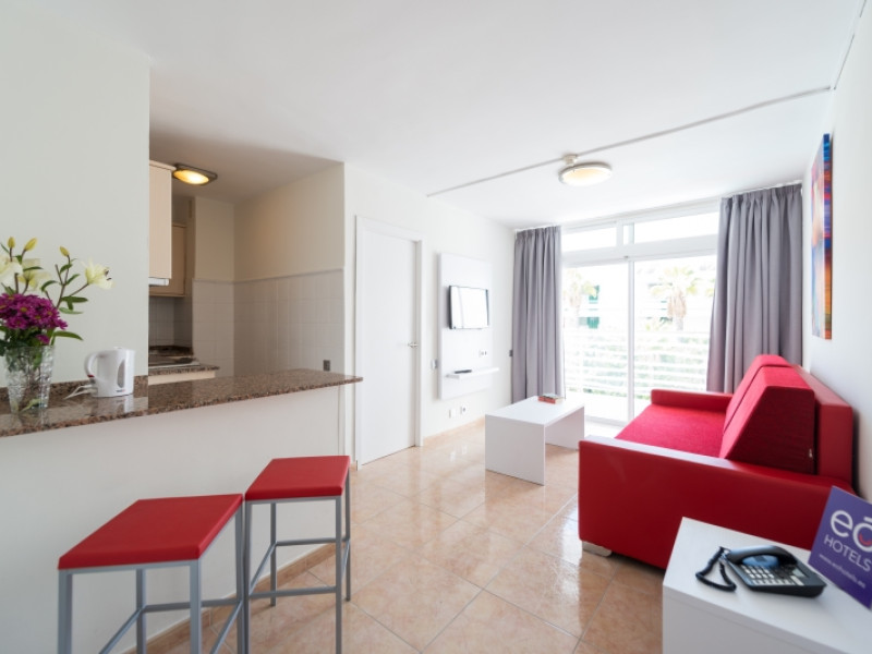 About 600 m from a beach lies the apart hotel eó Hotel Las Rosas. The city centre is around 1,2 km away. A supermarket is around 350 m away. In the vicinity a disco (approx. 350 m away) offers entertainment for holidaymakers. The hotel is equipped with a reception. Furthermore, you can relax outdoors on the sun terrace and in a garden. If you want to explore the holiday region, you can use the car rental service close to the hotel (extra fee). Distances