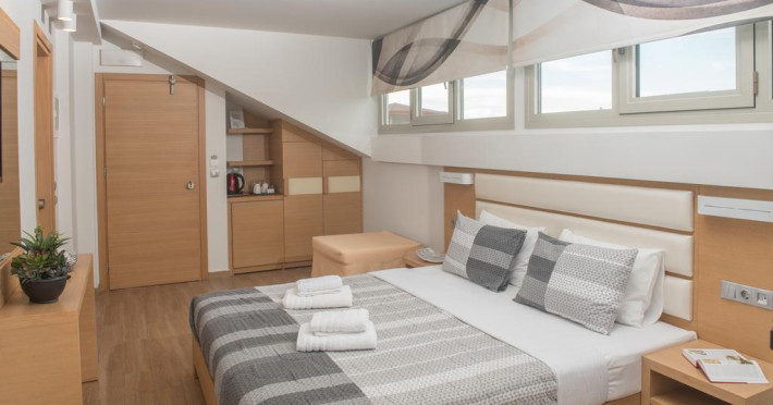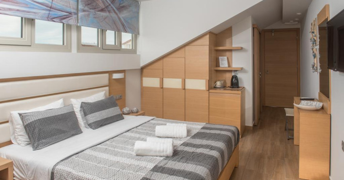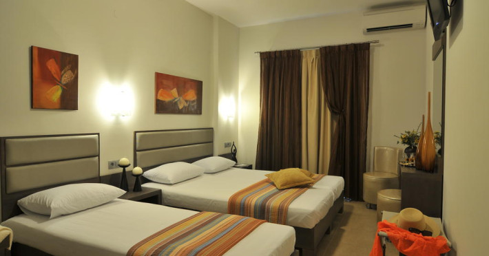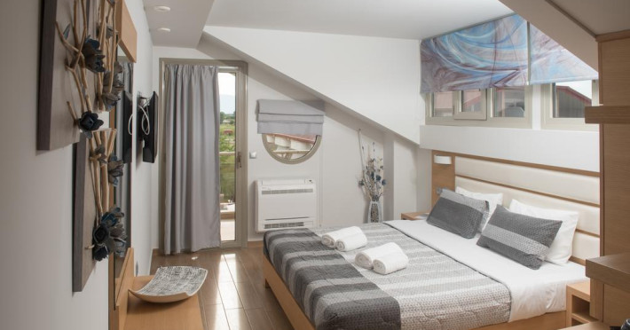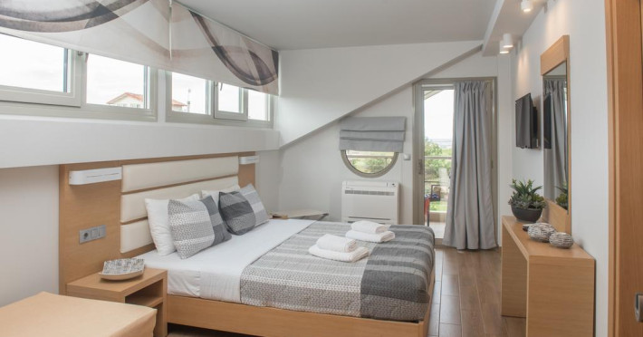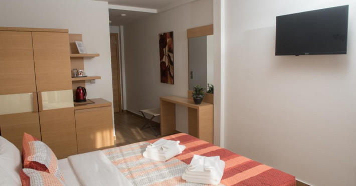 Fiecare cameră dispune de cană-fierbător. Camerele au balcon cu vedere la mare sau la oraș, unde oaspeții pot admira apusul sau răsăritul soarelui. În camere există baie cu cadă prevăzută cu foehn. Camerele confortabile de la Epavlis au pardoseală de gresie/ marmură, aer condiționat, Tv cu canale prin satelit și seif. Oaspeții au acces gratuit la serviciul Wi-fi în camere. Anumite camere au cadă cu hidromasaj care asigură un plus de confort și răsfăț. Fiecare unitate de cazare are frigider. Proprietatea oferă camere pentru familie cu o suprafață mai mare și un număr mai mare de paturi față de cele standard. Se pot rezerva de asemenea camere pentru nefumători.