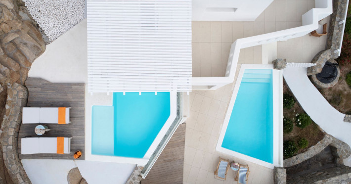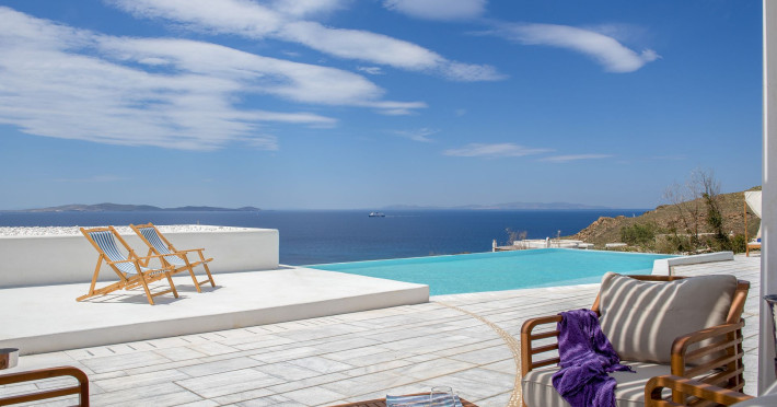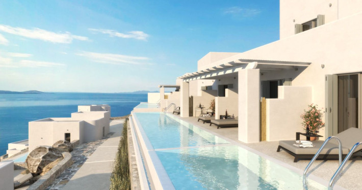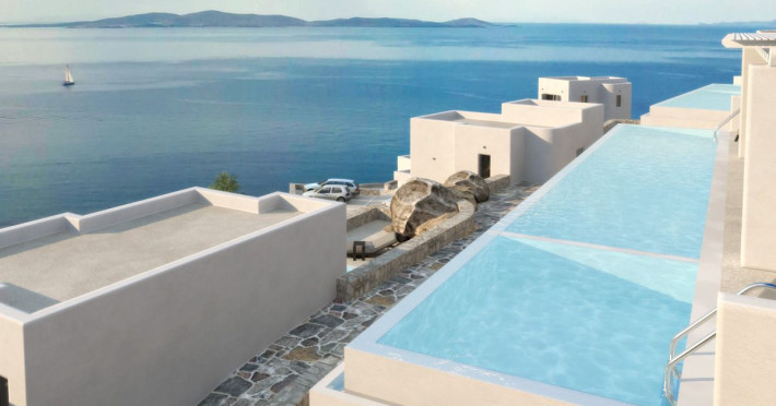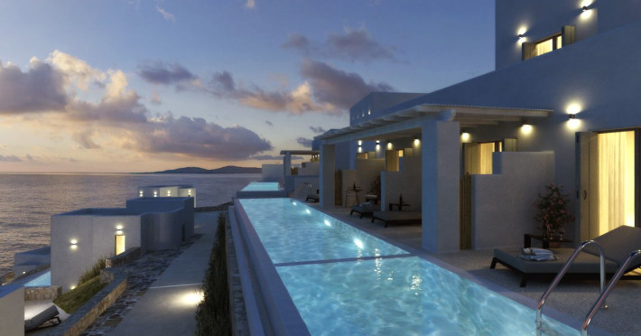 Nestled above the beautiful Houlakia Bay, the brand new (2020) Epic Blue, Suites and Villas, Mykonos, overlooks the alluring waves of the Aegean Sea and the surrounding islands.The Premise will open its gates in May 2020 and will welcome its guests to explore the Myconian beauty in a luxurious and peaceful setting. The New Hotel features 34 spacious suites and villas, with comfortable patios, outdoor jacuzzi and private pools. All rooms offer breathtaking 180° sea views and are furnished with premium, custom made, furniture and fine materials.Guests can enjoy the privacy of their room, or treat themselves in the public, facilities of the resort, the Infinity Pool, The Sweet Spa, the bars & the restaurants.All guest will enjoy VIP services from our well-trained personnel, including complimentary transfer for arrival & departure, complimentary shuttle service to Mykonos Town, 24-hour Personalized Concierge & Room Service, twice a day housekeeping & exclusive seasonal events.Nestled above the beautiful Houlakia Bay, the brand new (2020) Epic Blue, Suites and Villas, Mykonos, overlooks the alluring waves of the Aegean Sea and the surrounding islands.The Premise will open its gates in May 2020 and will welcome its guests to explore the Myconian beauty in a luxurious and peaceful setting. The New Hotel features 34 spacious suites and villas, with comfortable patios, outdoor jacuzzi and private pools. All rooms offer breathtaking 180° sea views and are furnished with premium, custom made, furniture and fine materials.Guests can enjoy the privacy of their room, or treat themselves in the public, facilities of the resort, the Infinity Pool, The Sweet Spa, the bars & the restaurants.All guest will enjoy VIP services from our well-trained personnel, including complimentary transfer for arrival & departure, complimentary shuttle service to Mykonos Town, 24-hour Personalized Concierge & Room Service, twice a day housekeeping & exclusive seasonal events.