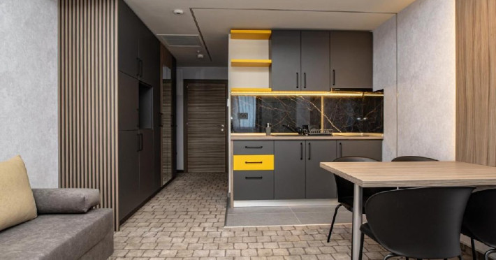 Studio 4* are o suprafata de 40 metri patrati si dispune de un spatiu de depozitare generos.