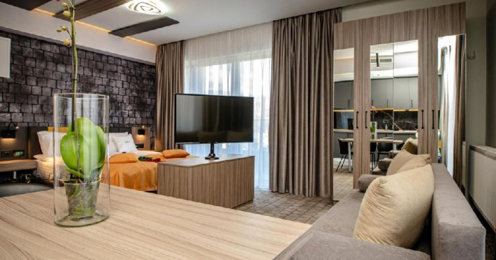 Apartamentele 4* au fiecare o suprafata de 60 de metri patrati si dispun de 2 paturi foarte confortabile, unul matrimonial si unul de tip canapea extensibila, avand capacitatea de pana la 4 locuri de cazare.