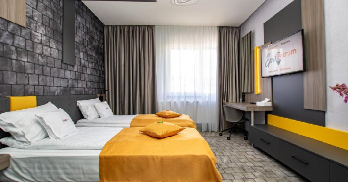Camera tripla 3* are o suprafata de 21 metri patrati si dispune de 2 paturi, unul matrimonial si unul de 1 persoana, avand capacitatea de pana la 3 locuri de cazare.