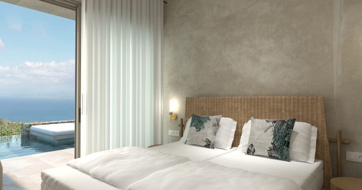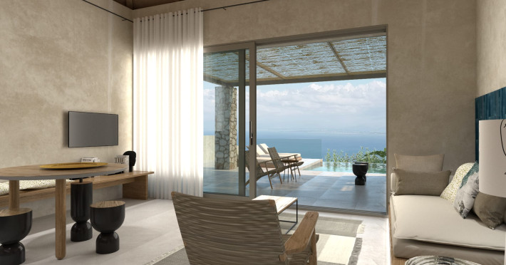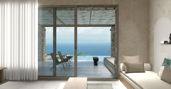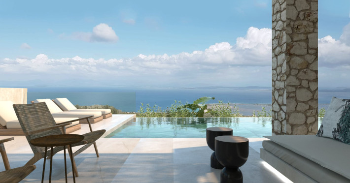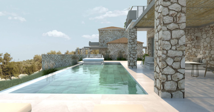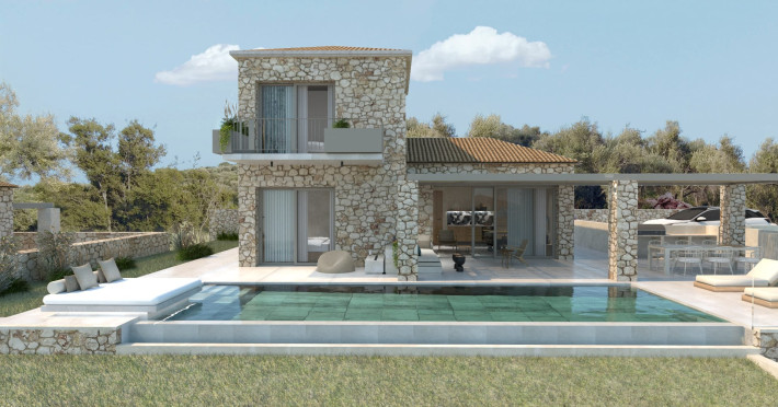 Returning to the concept of mathematics, an epiphany is a sudden and great revelation or realisation, something that all great mathematicians and scientists have had in their lives. It stresses both the brilliance of the architecture and the design, and gives off a double meaning, as epiphany also means the appearance of something beautiful and divine, sealing the beauty of the island and the location into the name. The replacement of the middle ‘’ph’’ with the letter Φ and the fact that its right in the middle of the word epiphany, with three letters left and right, strengthens the concept of balance and symmetry. Epiphany Villas is located on the panoramic area of Lefkada’s north-western coast, where you can gaze into the Ionian Sea and the port of the island. An idyllic location which provides the comforts for a memorable stay since it offers easy access to the town of Lefkada (7km), the traditional tourist villages Agios Nikitas (5km) and Tsoukalades (700m). Deep blue waters of the Ionian Sea await the traveller for a swim at the beautiful beaches of Kathisma and Pefkoulia which are just a breath away. Cosmopolitan bars accompany this picturesque hideout in Lefkada, which make it perfect for an evening drink.