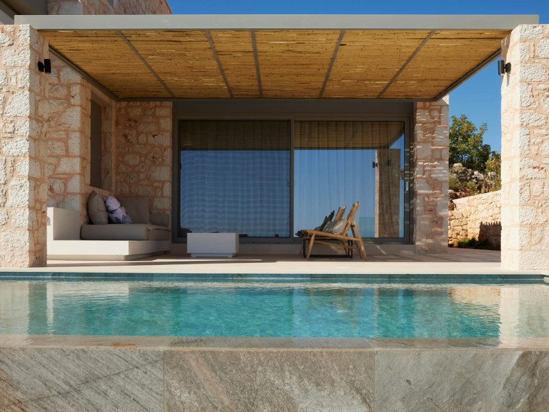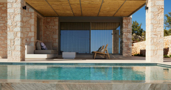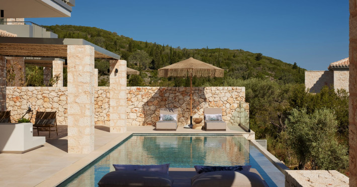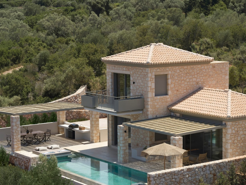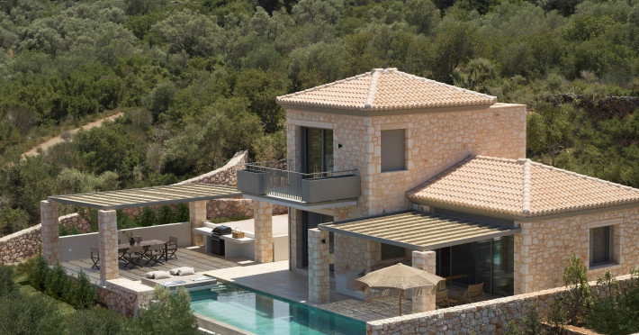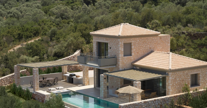 Epiphany Villas is located on the panoramic area of Lefkada’s north-western coast, where you can gaze into the Ionian Sea and the port of the island. An idyllic location which provides the comforts for a memorable stay since it offers easy access to the town of Lefkada (7km), the traditional tourist villages Agios Nikitas (5km) and Tsoukalades (700m).