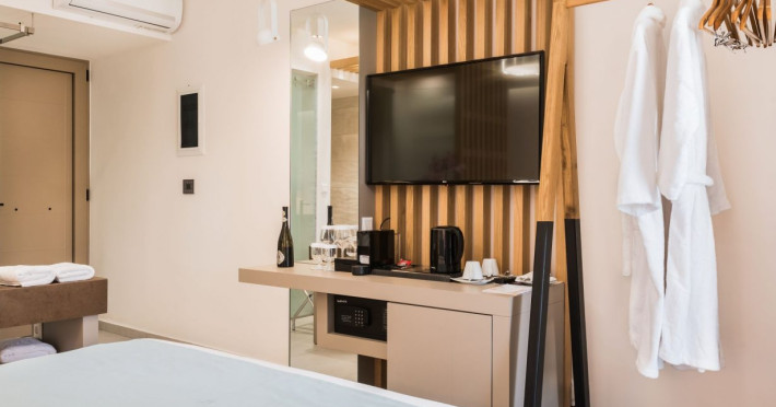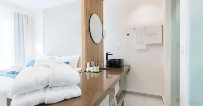 Camerele de la Epos Luxury sunt dotate cu aer condiționat, Tv cu canale prin satelit și seif. Fiecare cameră dispune de un aparat pentru preparare cafea sau ceai, cană-fierbător și minibar. Oaspeții pot solicita serviciul de room service pentru a servi masa sau diverse băuturi. În camere există baie cu cadă sau duș, foehn, articole de toaletă gratuite, precum și halate de baie și papuci. Camerele au balcon cu vedere la mare sau la piscină. Oaspeții au acces gratuit la serviciul Wi-fi în camere. Curățenia in cameră se face zilnic. Anumite camere au piscină privată și zonă de relaxare cu canapea, ceea ce asigură un plus de confort și răsfăț.