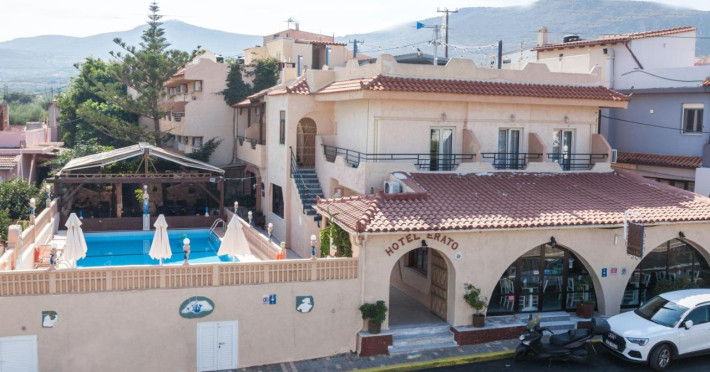 Amplasată în Gournes (Creta-Heraklion), la 800 m de plaja cu nisip amenajată, Erato este o proprietate de 3 stele care oferă o piscină în aer liber, terasă cu șezlonguri și umbrele de soare și unități de cazare cu aer condiționat. Pentru petrecerea timpului liber oaspeții au la dispoziție activități de agrement pe timpul zilei și programe de divertisment seara. Proprietatea are servicii de închirieri auto. Se oferă acces gratuit la internet Wi-fi în spațiile publice. Parcarea este disponibilă la proprietate gratuit.