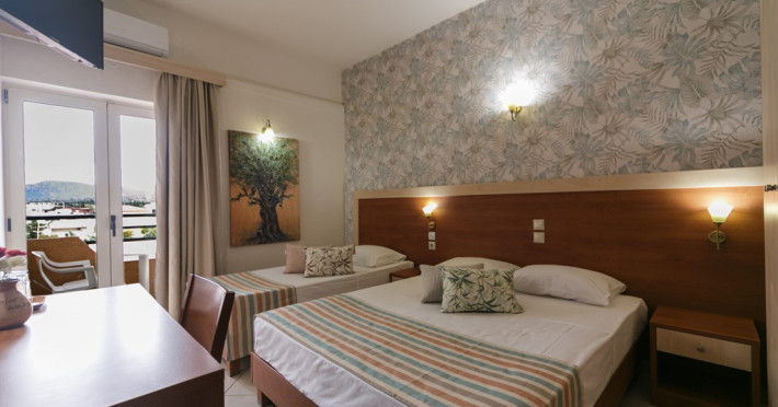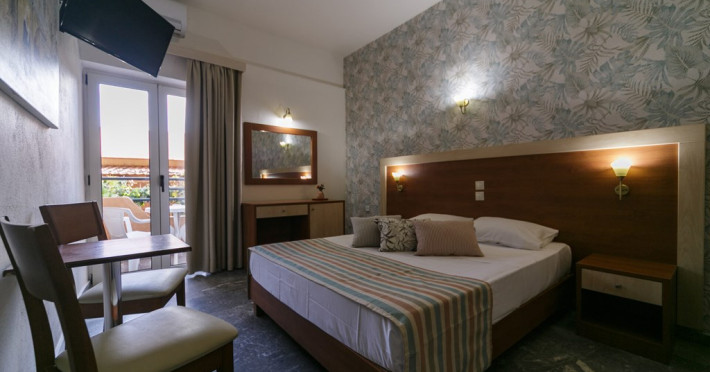 Sunt disponibile 31 camere. În camere există baie cu duș prevăzută cu foehn. Camerele au balcon cu masă și scaune unde pot fi petrecute momente de relaxare. Camerele de la Erato sunt dotate cu aer condiționat, Tv cu canale prin satelit și seif. Fiecare cameră dispune de cană-fierbător. Oaspeții au acces gratuit la serviciul Wi-fi în camere. Curățenia in cameră se face zilnic. Fiecare unitate de cazare are frigider și plită de gătit. De asemenea, sunt disponibile o zonă de luat masa și un cuptor pentru prepararea mâncărurilor. Proprietatea oferă camere pentru nefumători.