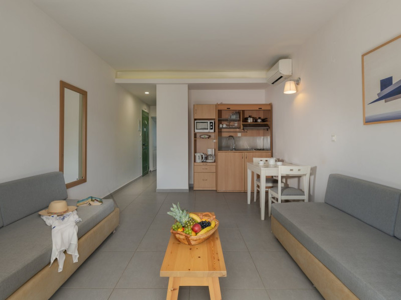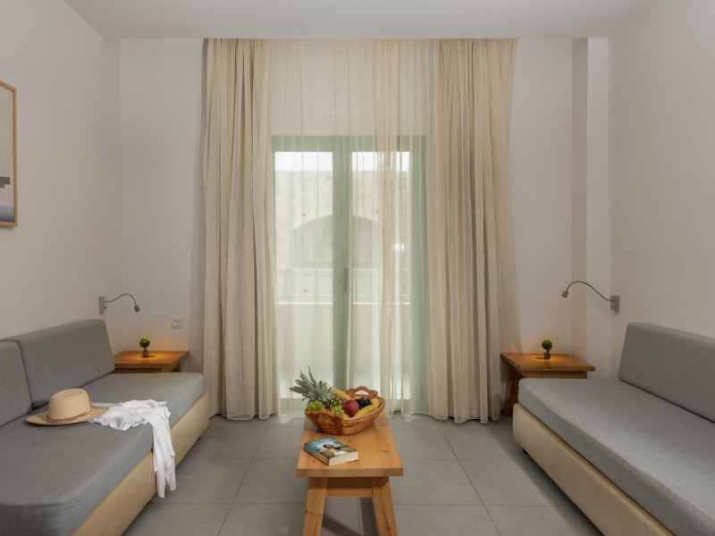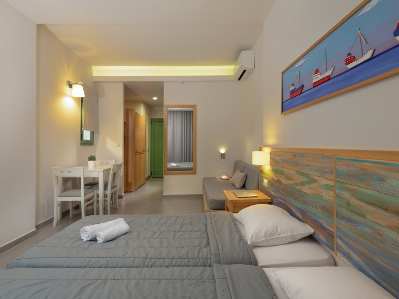 This adults-only hotel is located at a key spot. All the rooms have balconies, with a view either to the garden or to the sea. The seasonal swimming pool and the pool bar on site make sure that you have everything you need during your vacation.A refreshing breakfast is the best way to start your day! Both restaurants, one next to the pool and one watching over the main street of Agia Marina, serve the greatest flavors for the beginning of the day to boost your energy! Enjoy the first coffee of your day next to the pool, relax at the sunbed and get the best summer shade in your body, or have your breakfast with a view of the White Mountains and get ready for a day full of activities!