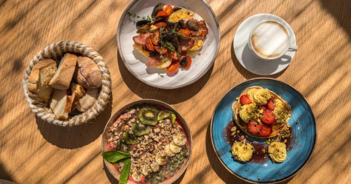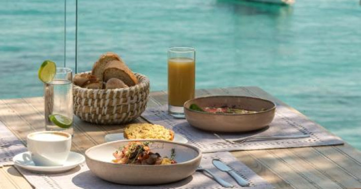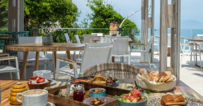 Restaurantul hotelului servește mic dejun continental, englezesc și grecesc, precum și mancăruri tradiționale pentru pranz și cină, pe care oaspeții le pot salva pe terasa incantătoare. Barul de la piscină oferă băuturi, cocteiluri și gustări.